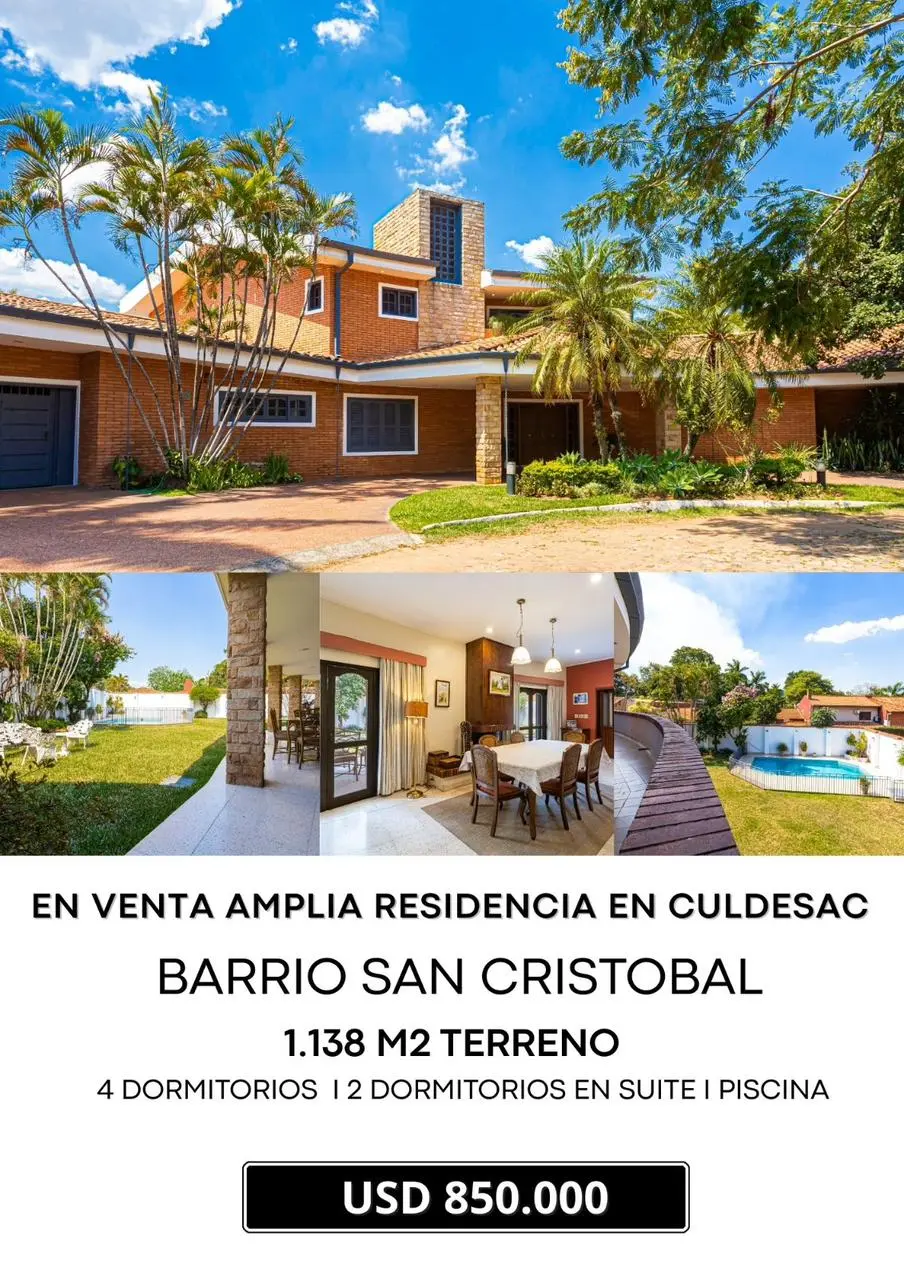 La propiedad se encuentra en el barrio San Cristóbal, en un cul-de-sac,(calle sin salida) ventaja de vivir en un entorno tranquilo y alejado del bullicio, pero con fácil acceso a importantes avenidas como la Avenida San Martín, Mariscal López a 5 minutos del paseo la Galeria