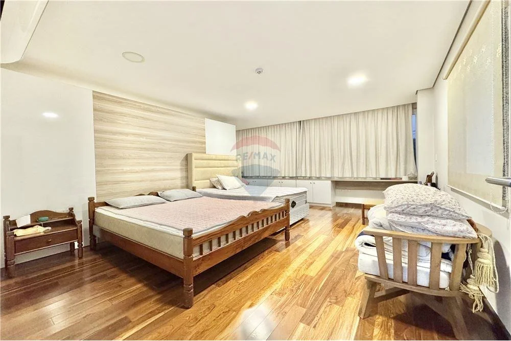La casa, con 544 m² construidos, se destaca por su sólida estructura y distribución pensada para el confort diario. En planta baja, cuenta con una amplia sala, estar independiente, comedor y cocina bien definida, además de área de servicio con habitación propia. El espacio exterior incorpora piscina, generando un entorno ideal para el descanso y la vida social. La propiedad dispone también de garaje para dos vehículos.