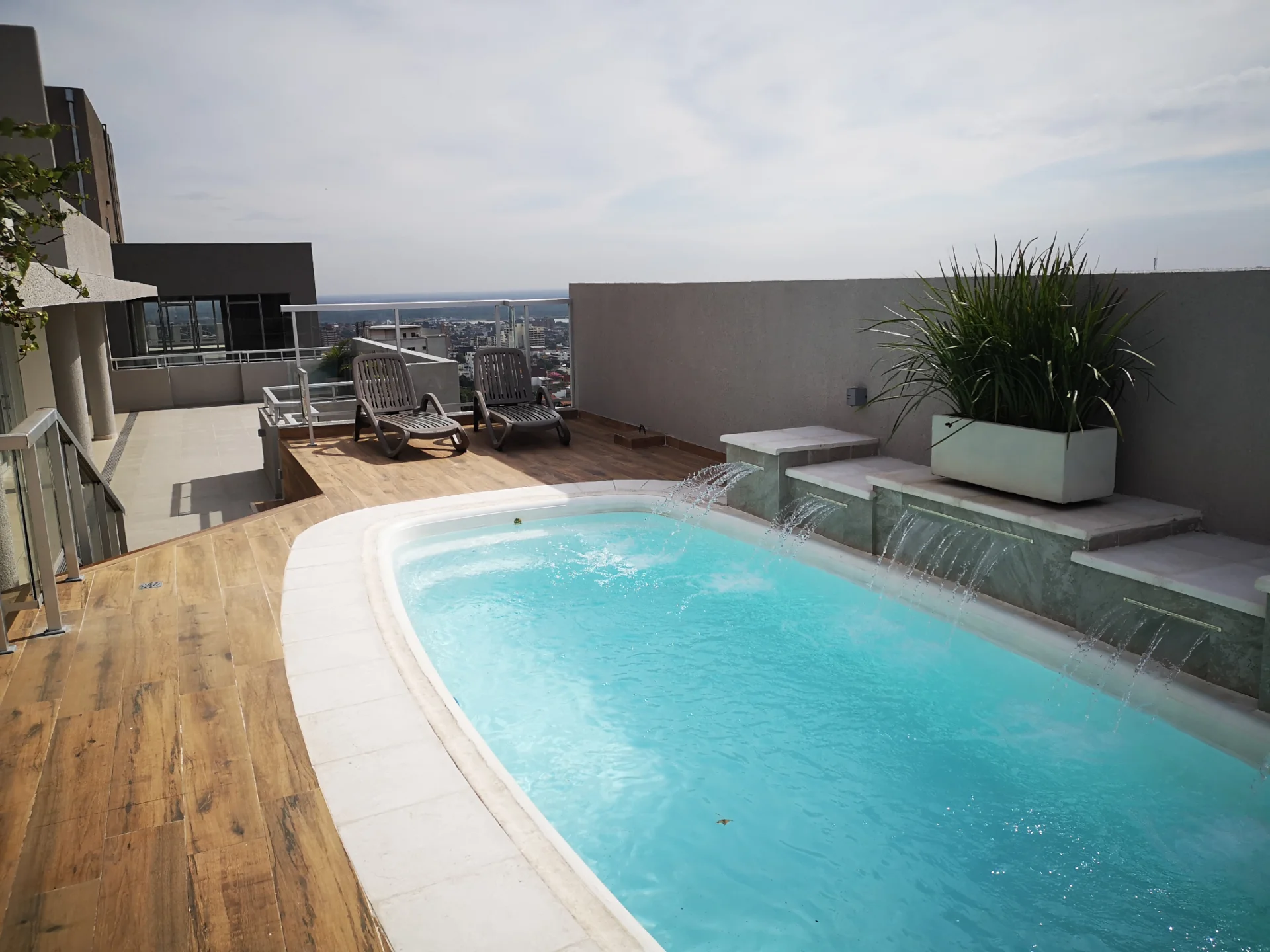 • Terraza con espectacular vista al centro de Asunción, la bahía y mucho más.