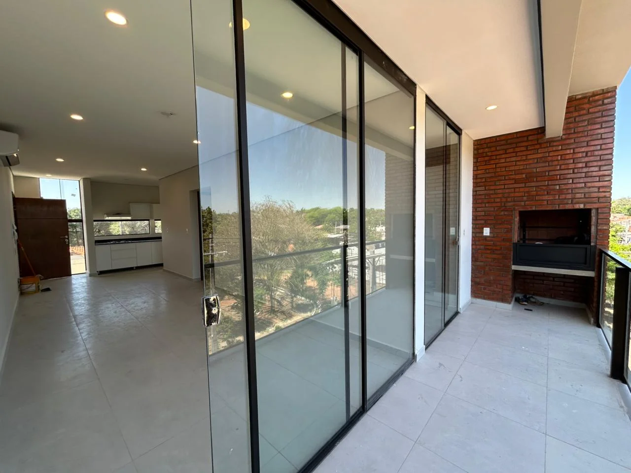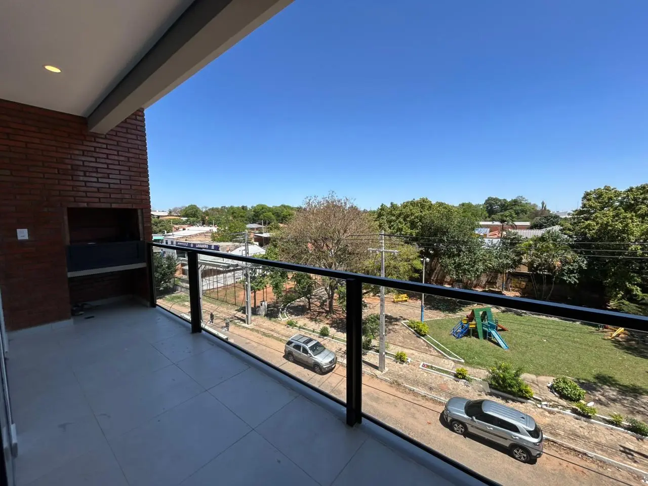 Balcón con parrilla.