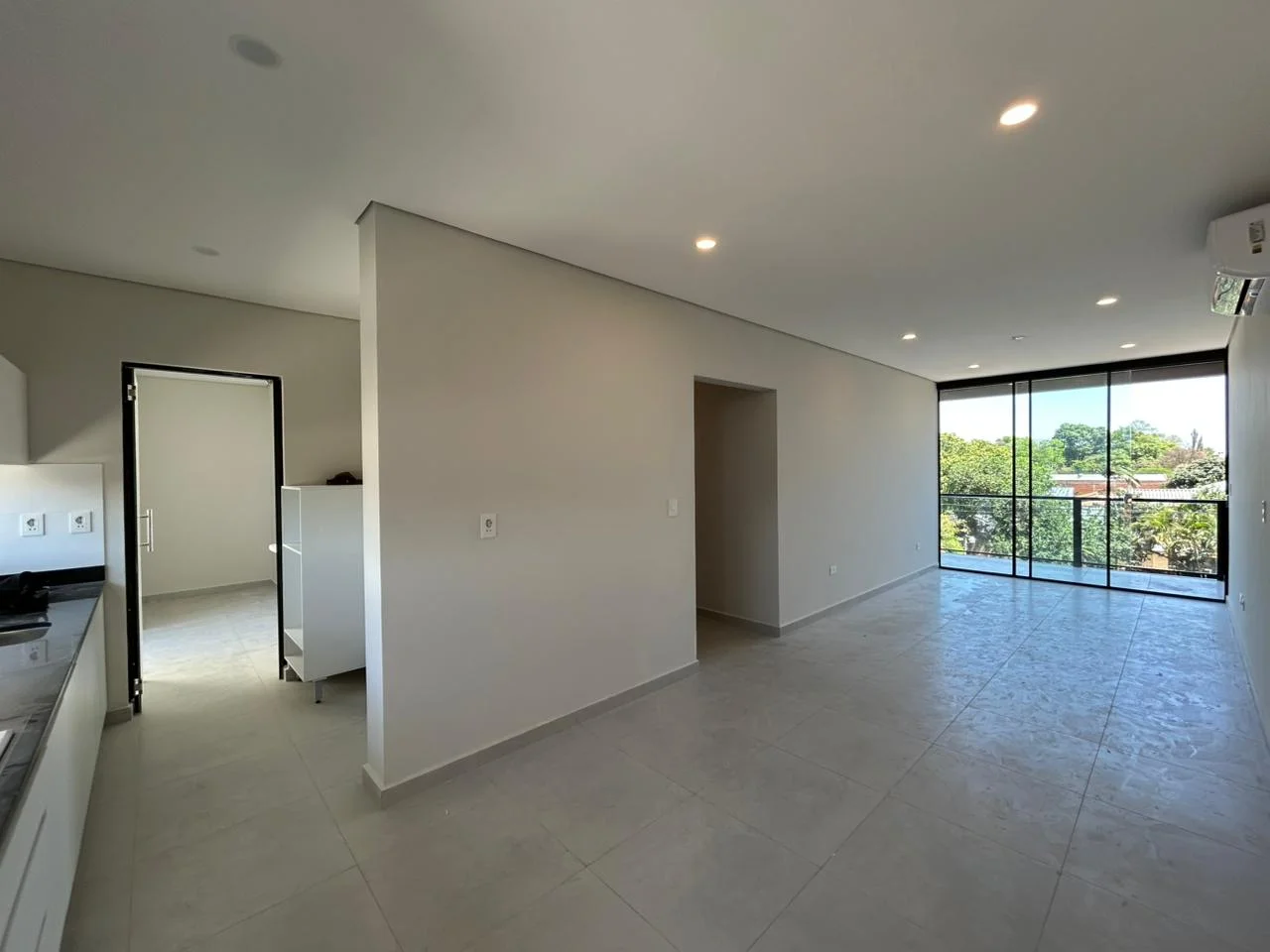 2 Dormitorios , 1 de ellos en suite ,con placares, split y cortinas antisolares, baño moderno, amplia sala comedor con cortinas antisolares, integrada con la cocina amoblada, anafe y extractor, cuenta con amplio lavadero independiente.