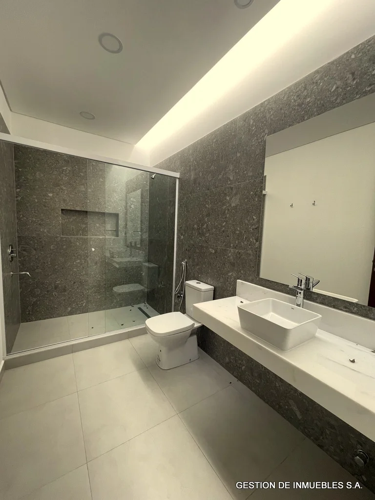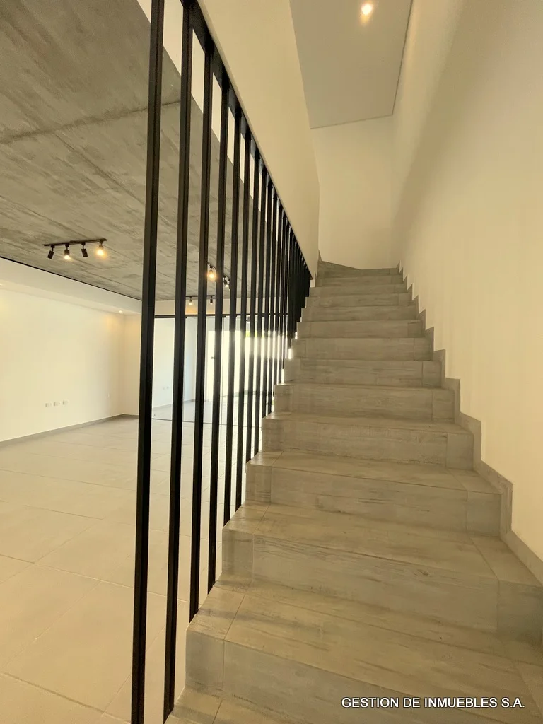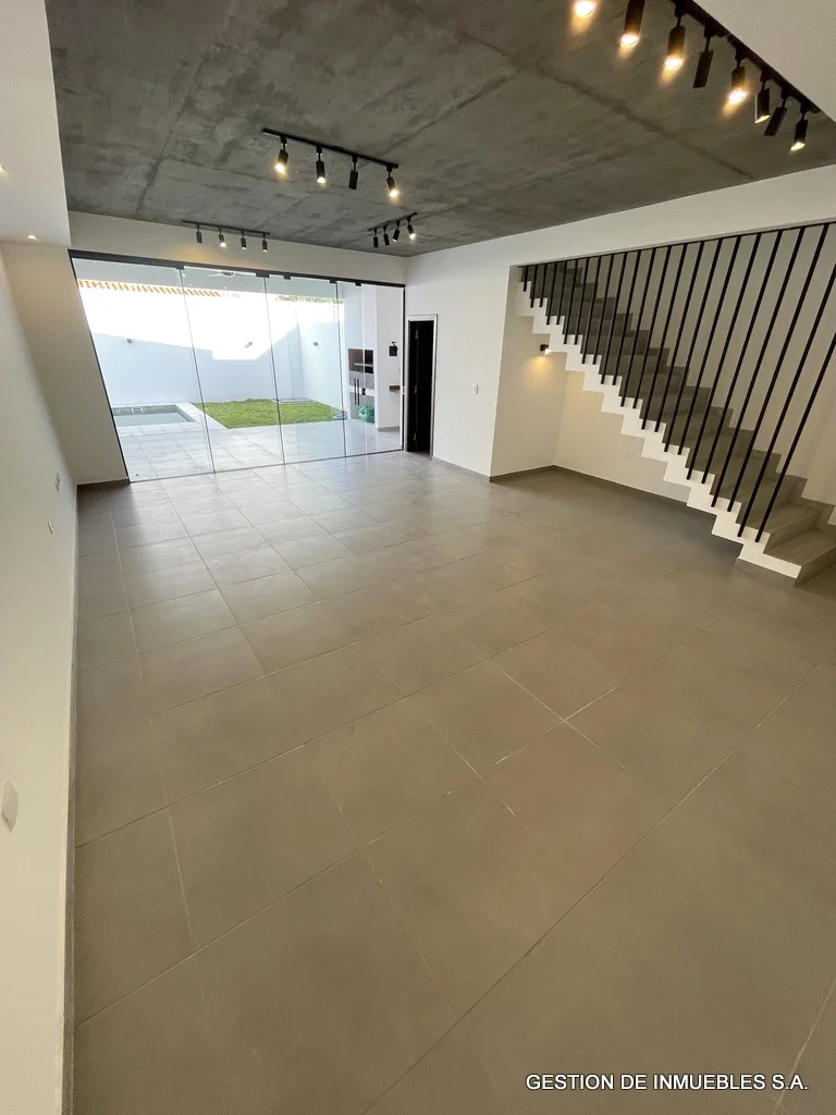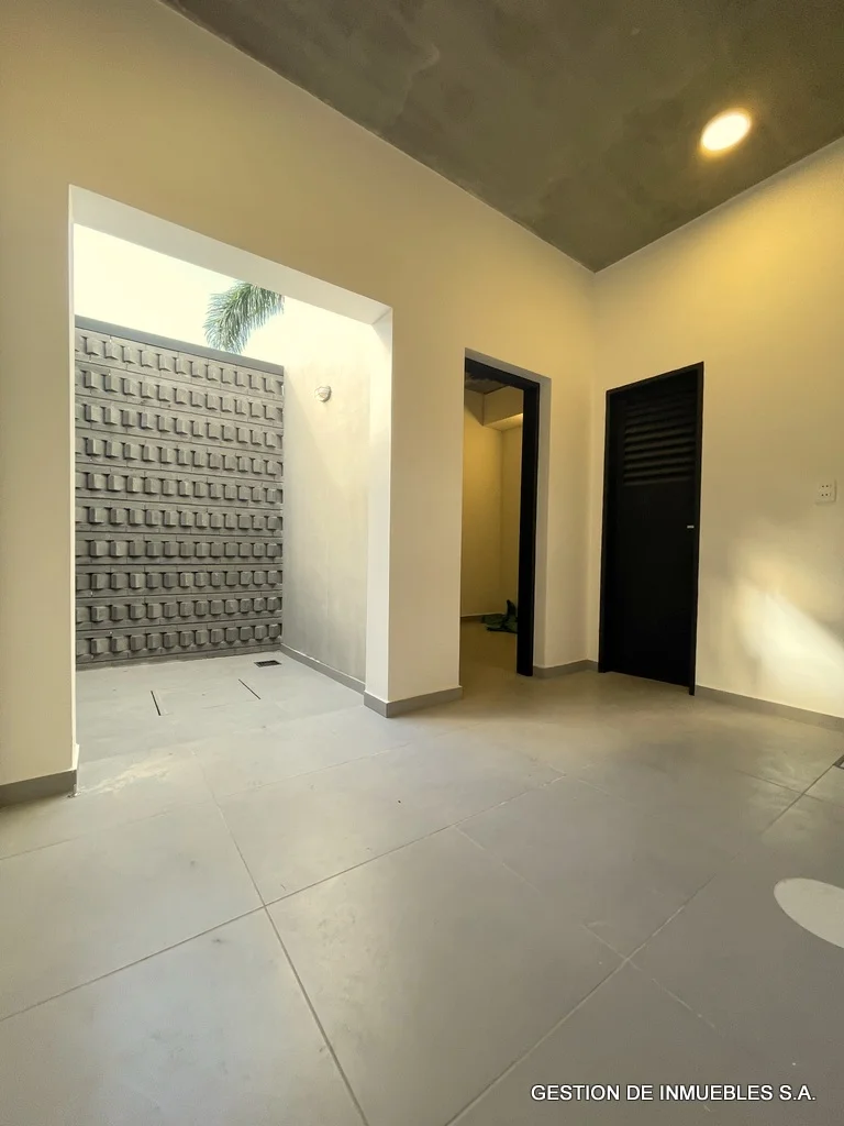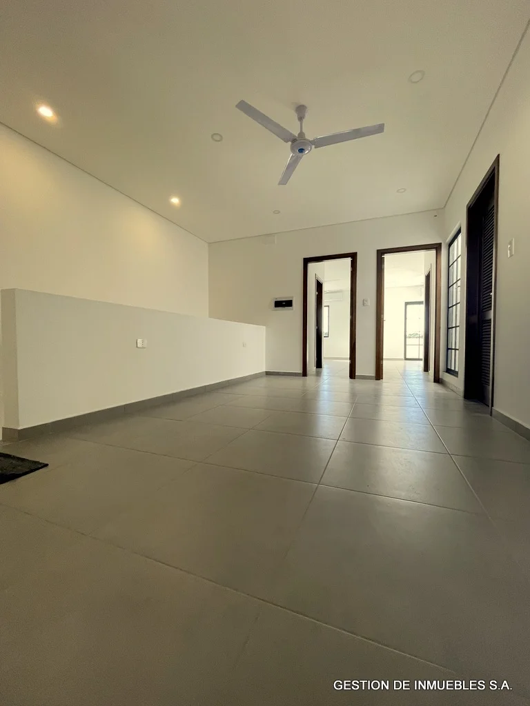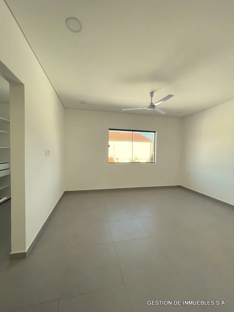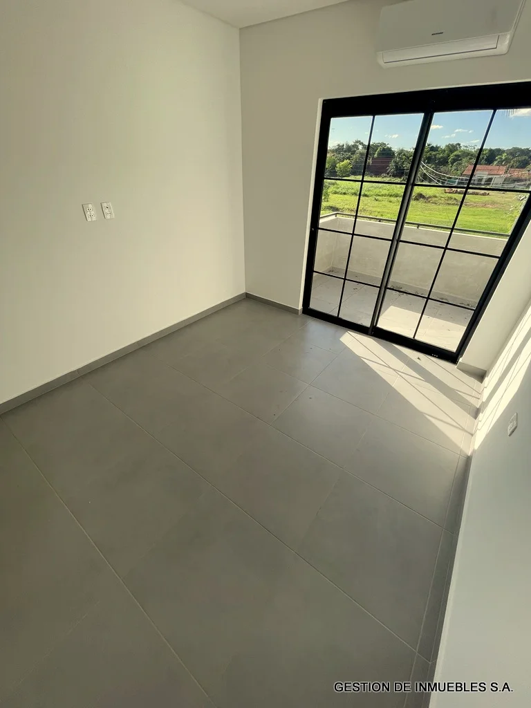 A ESTRENAR – DUPLEX DE PRIMER NIVEL EN ALQUILER A30-02-8 A estrenar, en alquiler hermoso dúplex de primera, de dos plantas, sobre asfaltado, de fácil acceso, zona Hotel Bourbon. Area construida de 230 m2. - Sala/comedor amplios con baño social - Cocina amoblada - Galería con parrilla - Patio y piscina - Área de servicio completa - Cochera para dos vehículos - Planta alta - Estar intimo amplio - Depósito - 3 dormitorios con baños en suite (el principal con vestidor). Otras comodidades: aire Split en todos los ambientes, ventiladores de techo en todos los ambientes, alarma, cerco eléctrico incluido, tanque de agua de con bomba de presión, todos los baños con termotanques independientes Alquiler mensual: Gs. 7.500.000.-