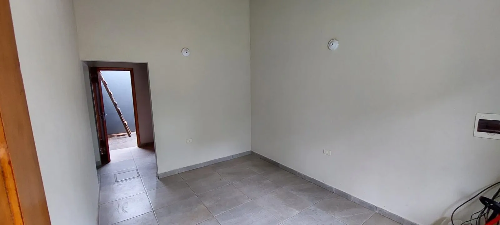 El chalet cuenta con rejas, cerca eléctrica, ingresando se encuentra el jardín con estacionamiento para 2 vehículos, se accede a la casa dando a la sala con comedor integrado, luego se encuentran las 2 habitaciones y el baño con tragaluz a la mano izquierda, a la mano derecha está la cocina y al fondo el lavadero.
