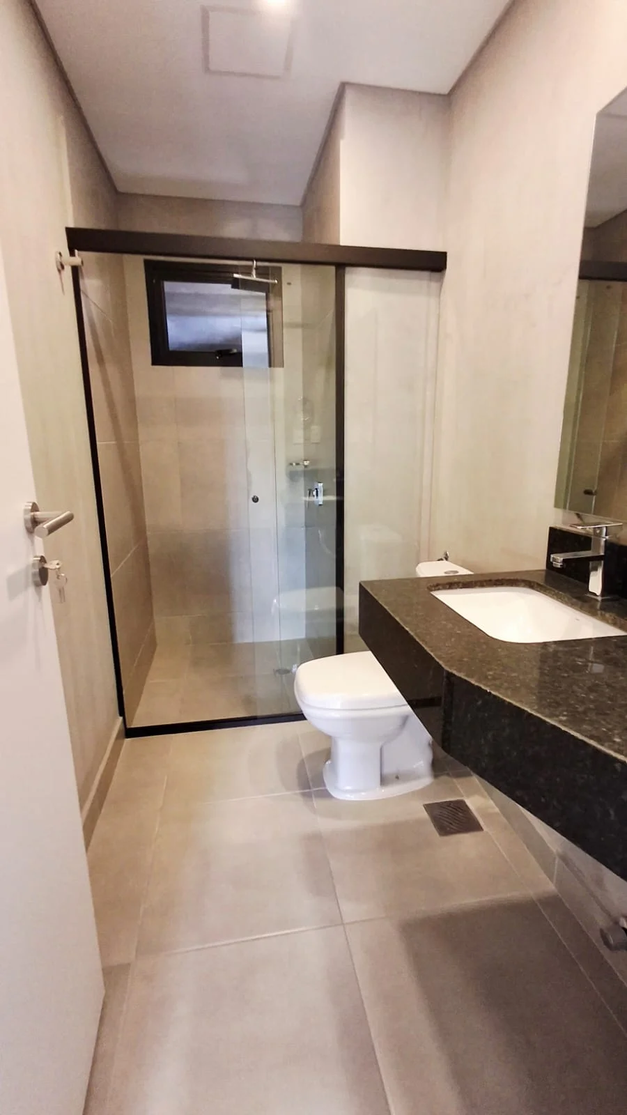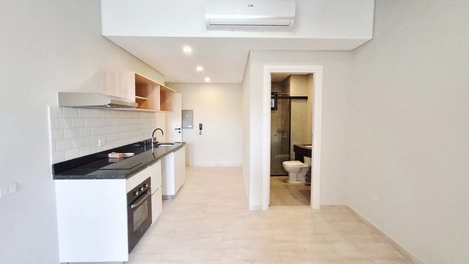 Departamento equipado con amplio placard, aire acondicionado, cortina Roller Black out.