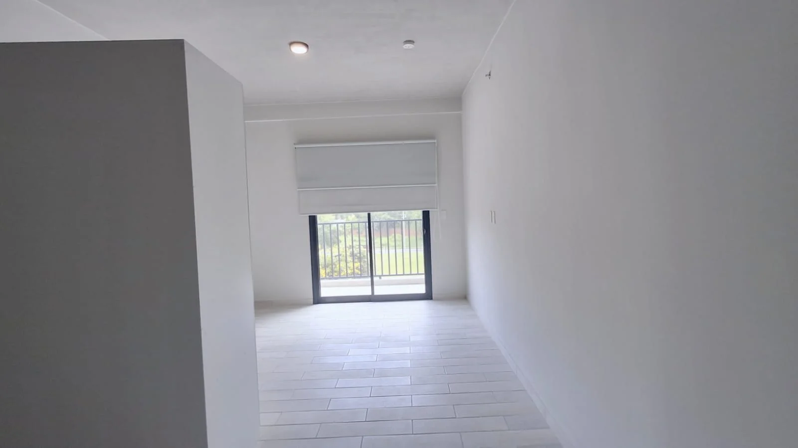 Sala comedor con salida al balcón y vista al frente, cocina amoblada en concepto abierto, equipada con anafe, purificador, horno.