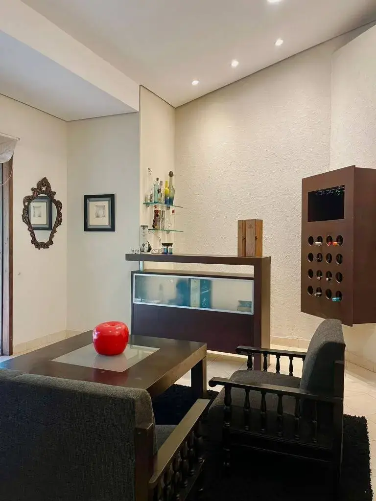 Área de estar conectada a un pequeño patio interno que da mucha luminosidad a los ambientes.