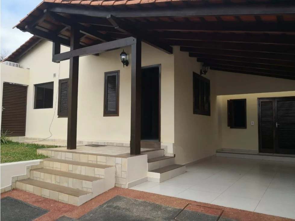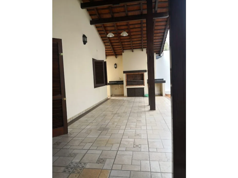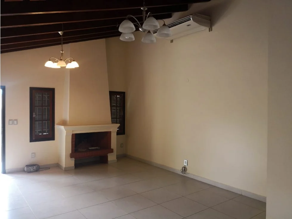 Casa en una planta cuenta con: 2 habitaciones, una de ellas en suite, baño familiar/social, sala/comedor con chimenea, estar con entrada independiente que puede ser una habitación más, cocina/comedor moderna amoblada, área de servicio con habitación y baño. Amplio patio empastado y arbolado, galería con parrilla