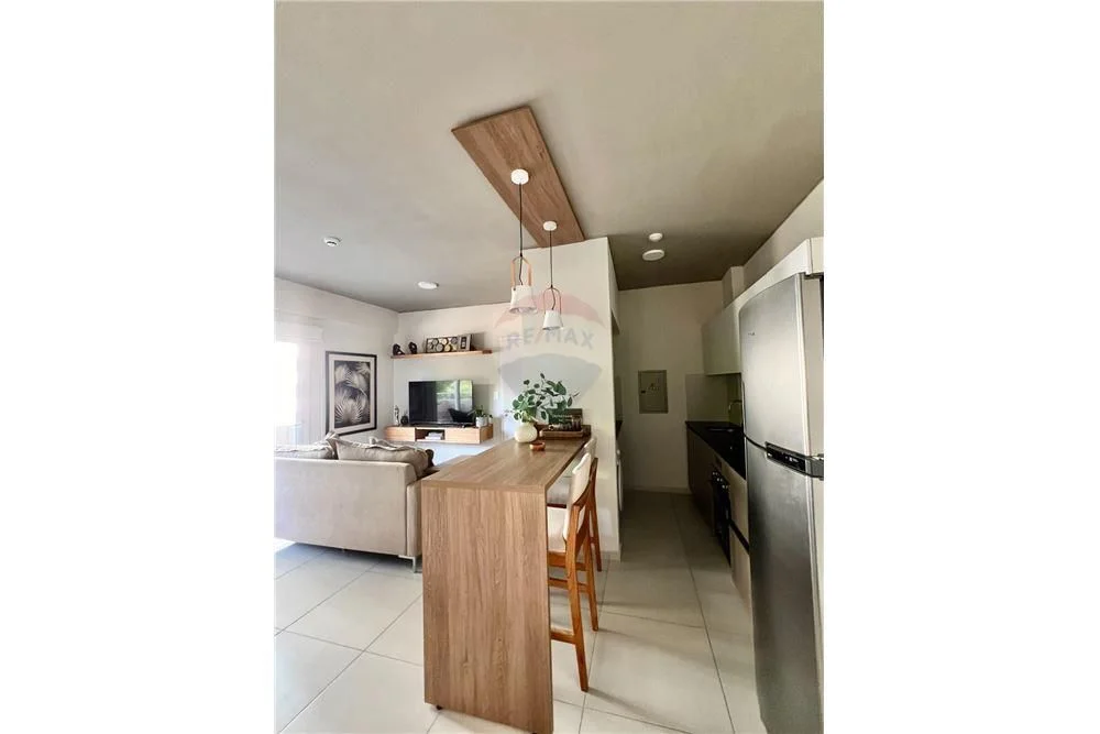 * Cocina equipada con muebles bajos y mesada de granito.