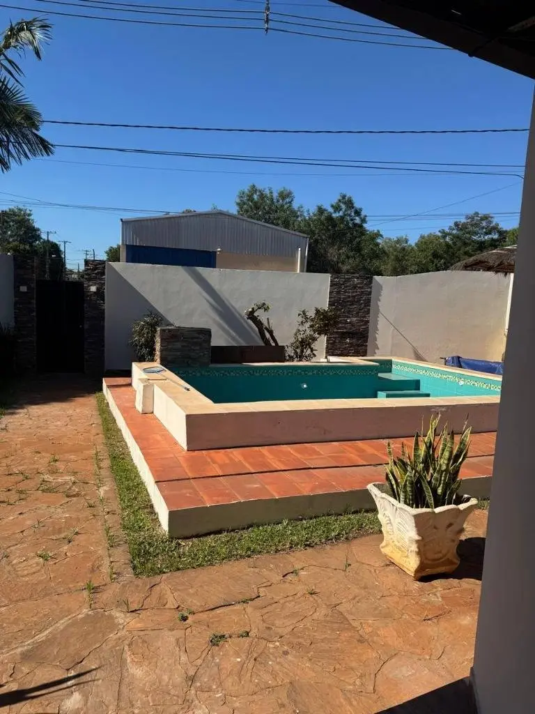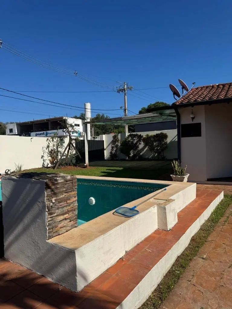 Cuenta con 2 habitaciones (1 en suite), sala, cocina, comedor ingtregrados,baño social - familiar, piscina con clonación salina, cochera techada para 2 vehiculos, portón eléctrico, quincho, generador, jardin (cuenta con arboles de limones).