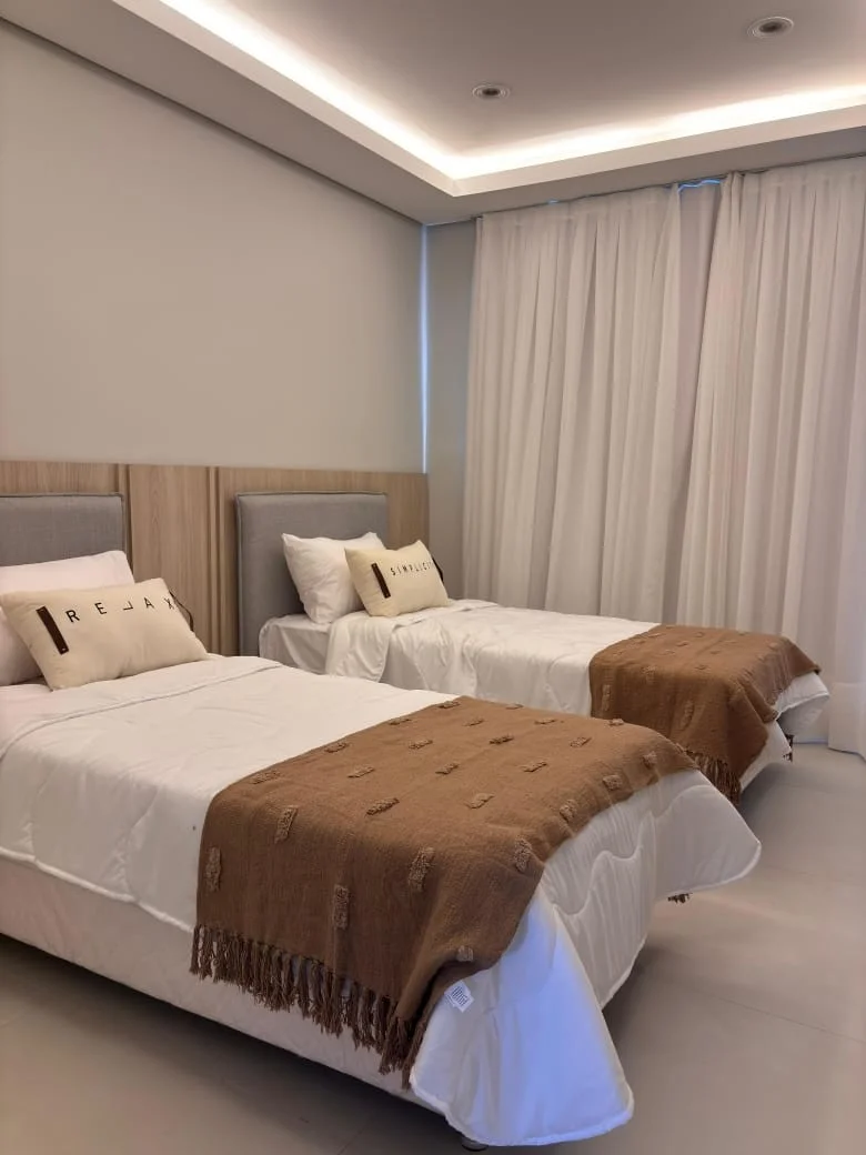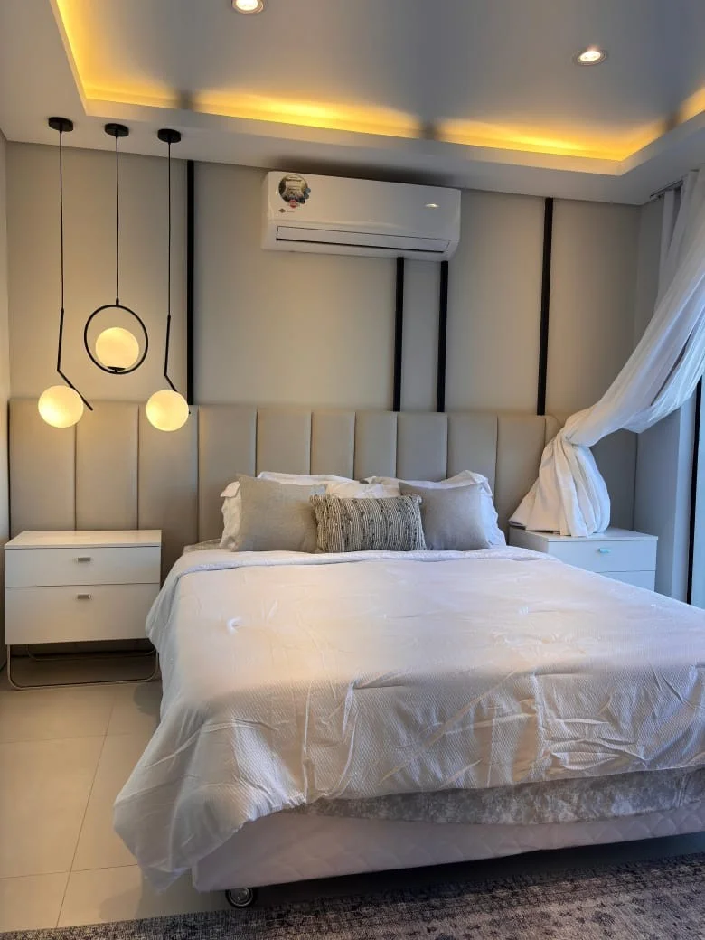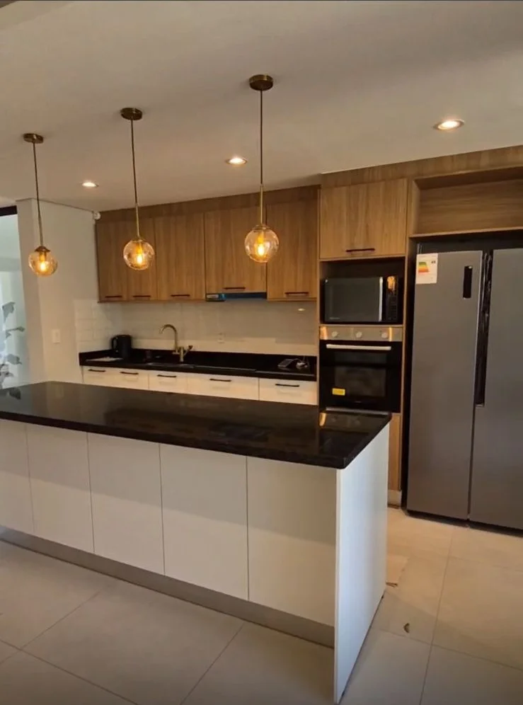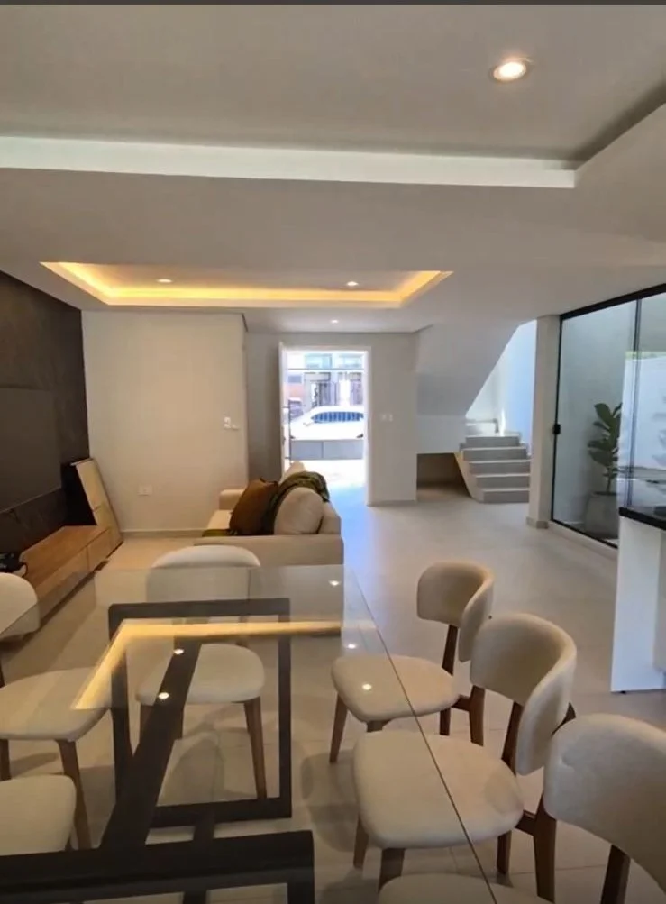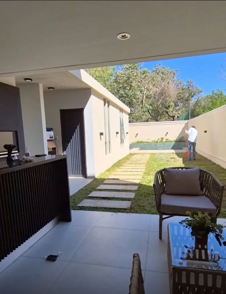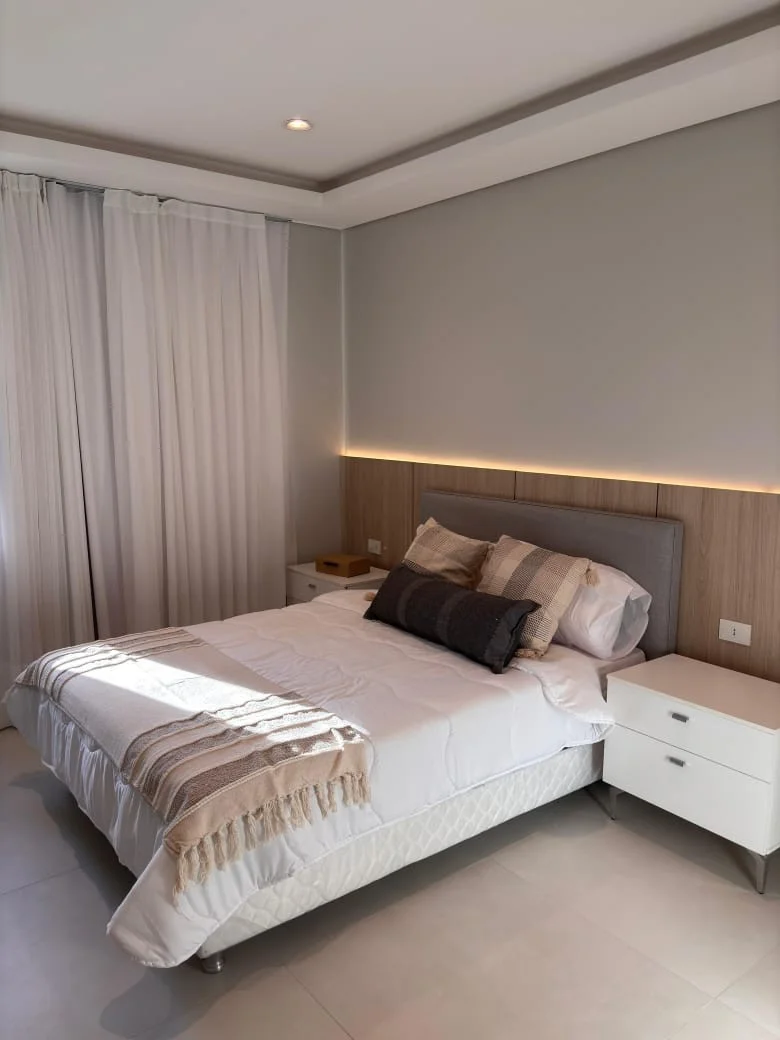 ALQUILER moderno duplex amoblado en Luque zona Madero a 10 min de eje corporativo. PRECIO: 2.000 USD Terreno: 216 m2 Construido: 200 aproximadamente PLANTA BAJA Cochera para 2 vehículos Baño social Living comedor Cocina amoblada Galería amplia con parrilla Amplio patio Piscina con cascada Area de servicio (habitación, baño y lavadero) Quincho con baño PLANTA ALTA: 1 habitación en suite con vestidor 2 habitaciones que comparten baño Cod: 003