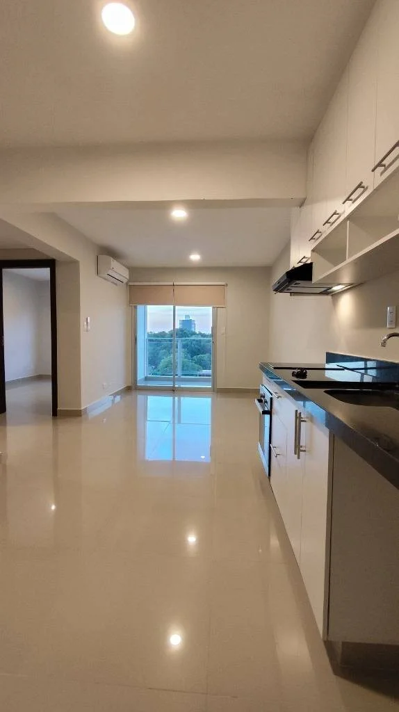 Edificio Residencial Santa María Superficie 65m² Piso 4 Características -2 dormitorios (1 en suite) -Sala - Comedor -Cocina equipada -Balcón con parrilla -2 baños -Cochera El departamento posee: -Cortinas antisolares -Aires Acondicionados en todos los ambientes -Muebles de cocina y placares -Horno, anafe y purificador -Espejos y mamparas en los baños Amenities: -Amplia Piscina -Gimnasio climatizado -Sala de juegos para niños climatizado -Amplio salón de eventos climatizado con parrilla y baños -Quincho exterior con baños sexados (zona pile) -Plaza con parque infantil (patio) El Edificio cuenta con: -Portería 24hs. -Cámaras de seguridad -Ascensor Biggie y Farmacias a pasos, Aeropuerto a minutos del Eje corporativo, Shoppings y Locales gastronómicos a 10 minutos 42757 (Incluye IVA & expensas)