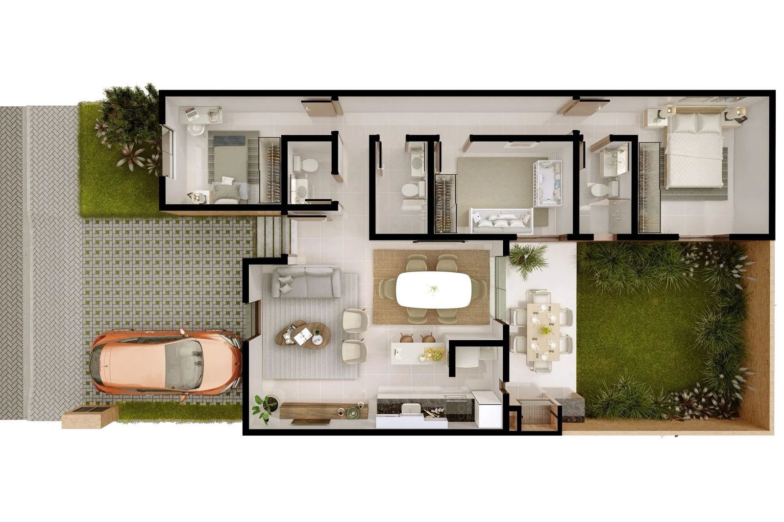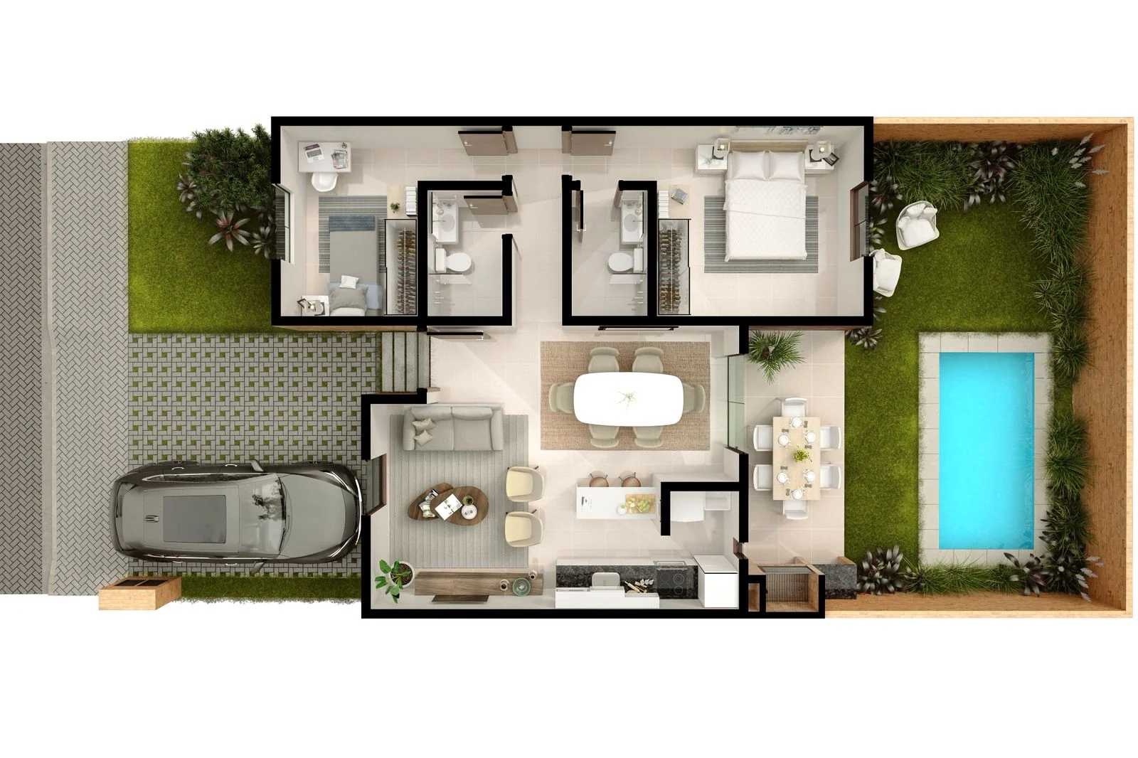 Elige entre nuestras casas de 2 y 3 habitaciones, construidas en lotes de 170m², todas con 2 cocheras y quincho propio. Además, tienes la opción de contar con piscina propia en tu espacio privado.