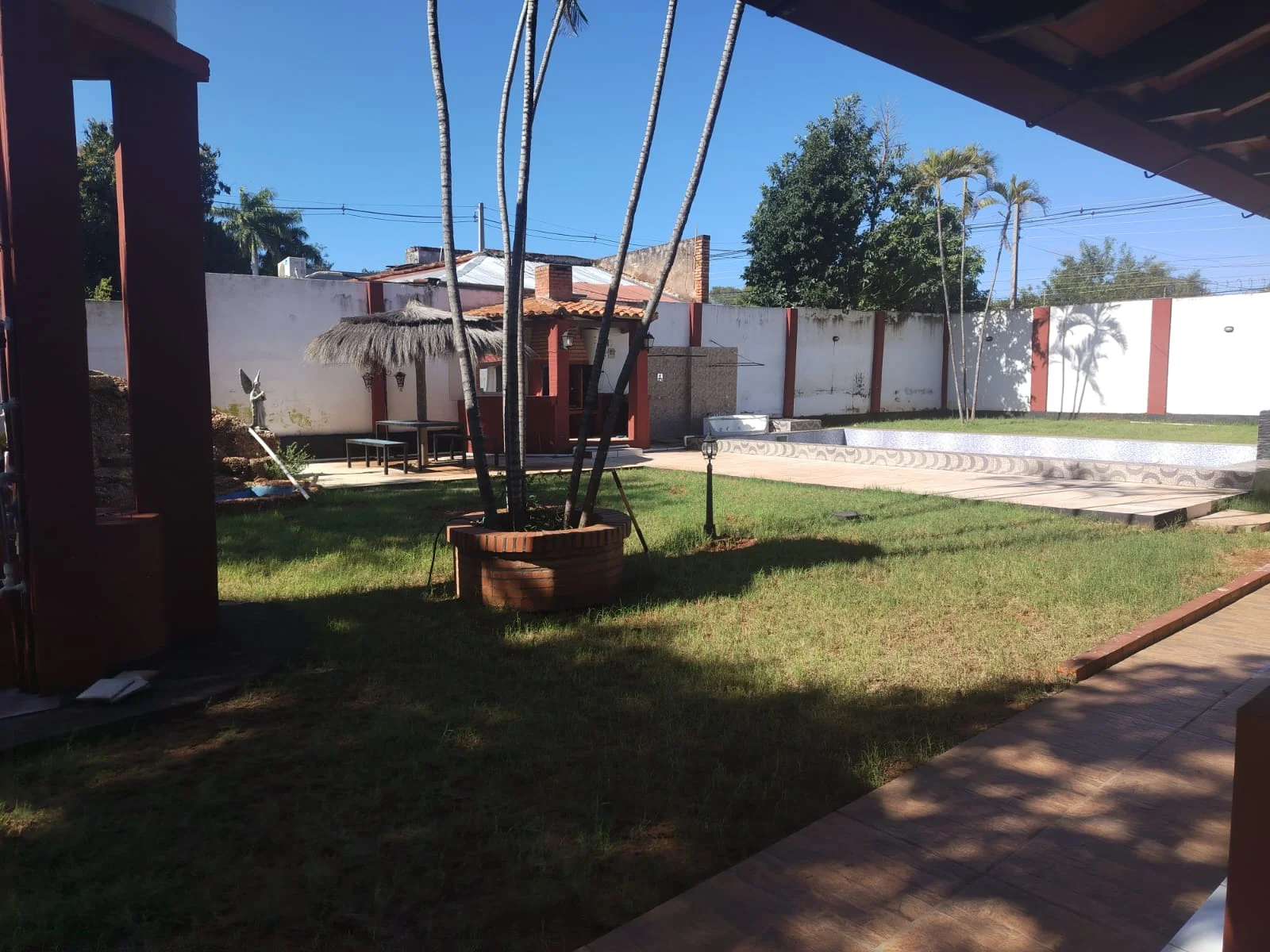 Piscina de importante tamaño con ducha .