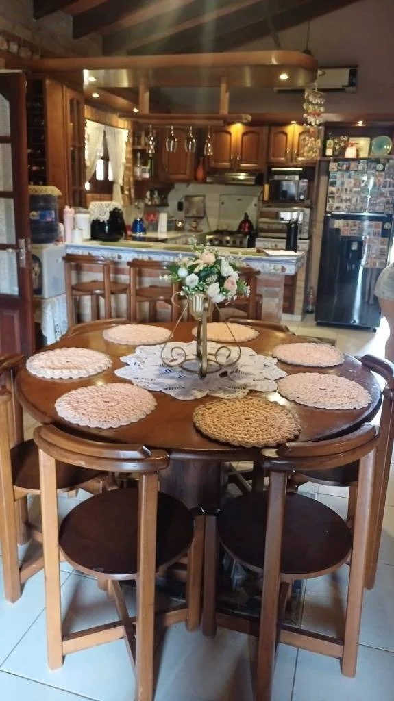 Área Social y Cocina: Cocina independiente totalmente amoblada con carpintería de madera de excelente acabado, mesadas de granito y un desayunador funcional que conecta con el área de comedor. Los techos de madera a la vista aportan un toque rústico y elegante.