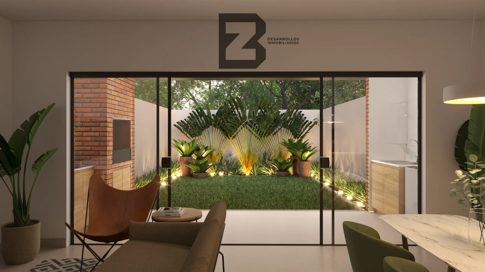 Patio empastado trasero de mas de 40m2