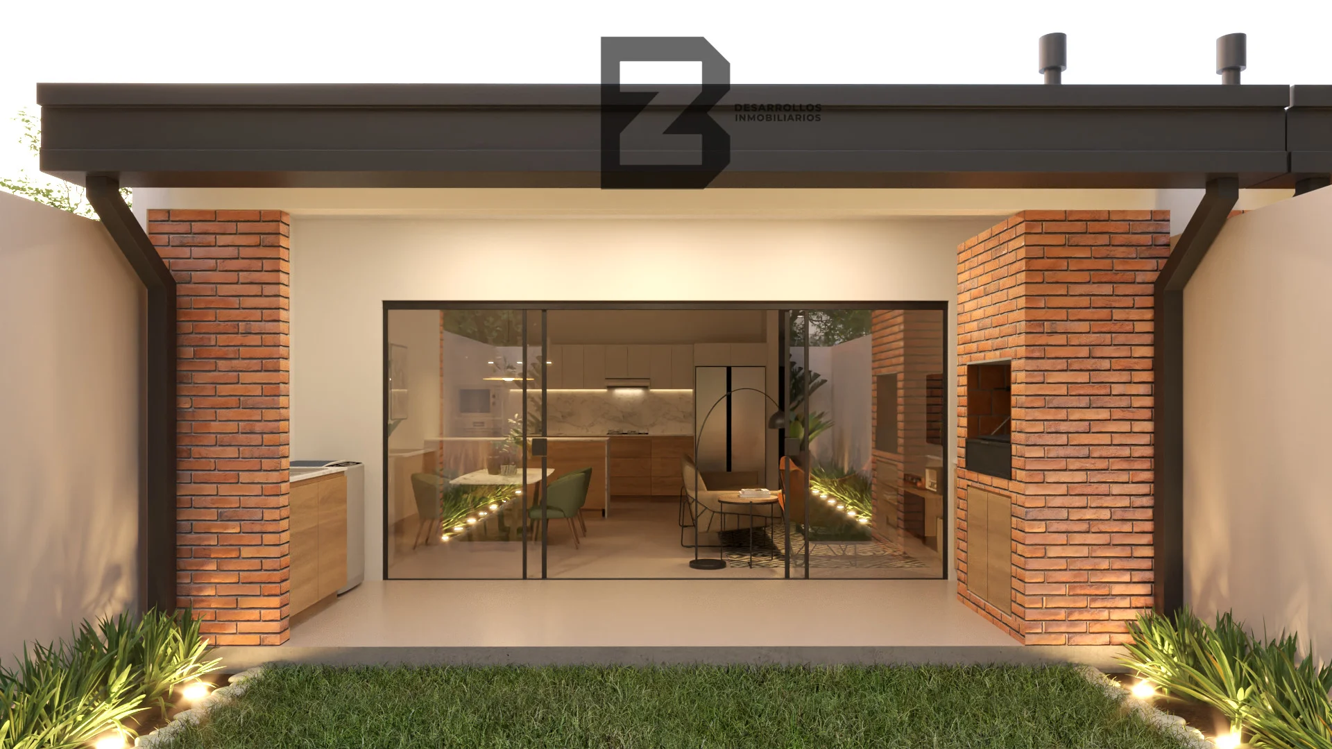 Sala cocina comedor del ancho total del terreno que integra con quincho