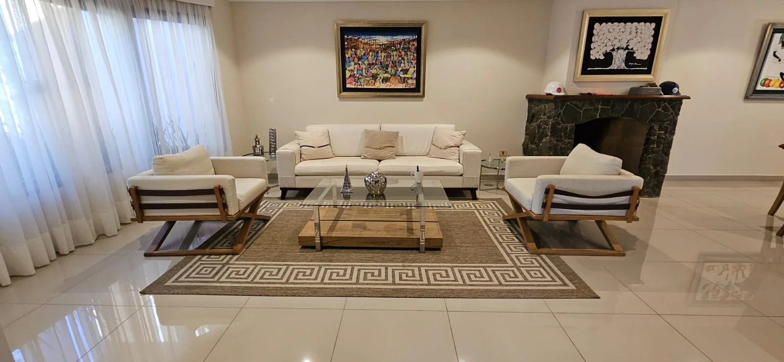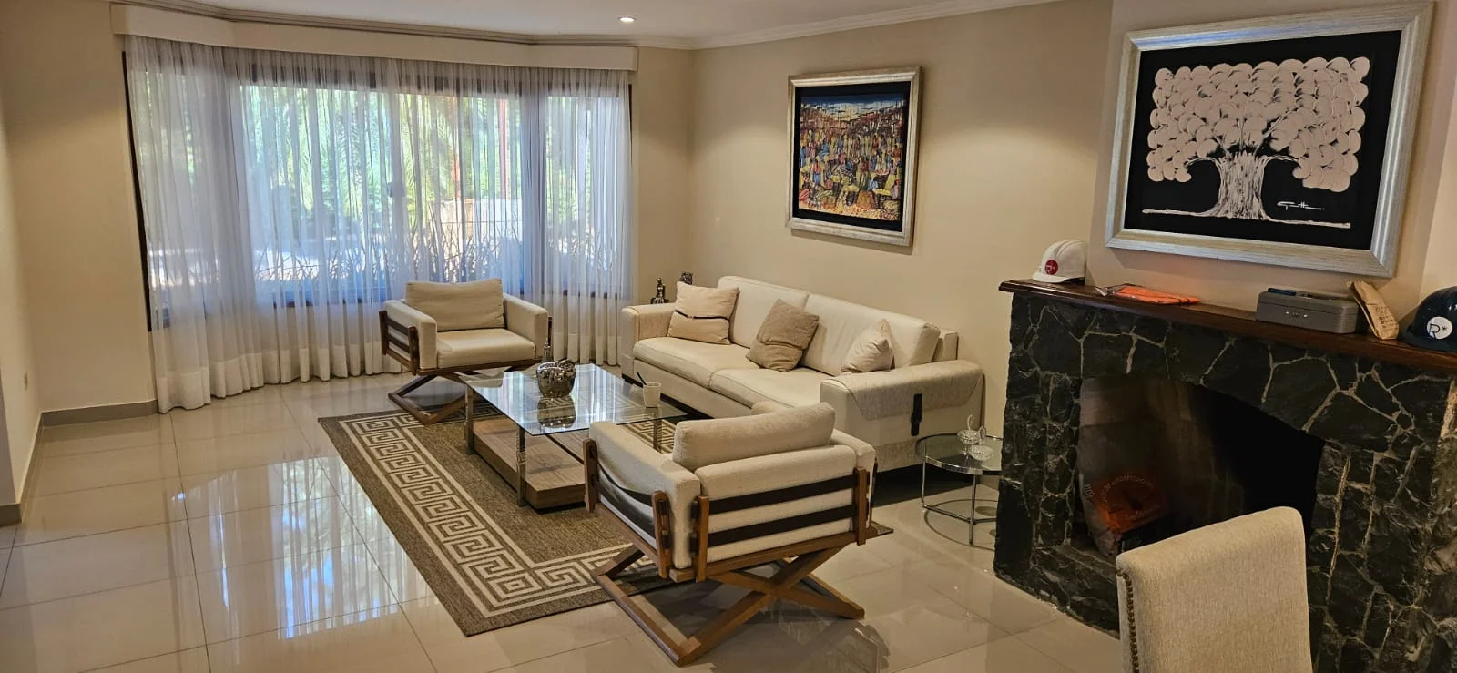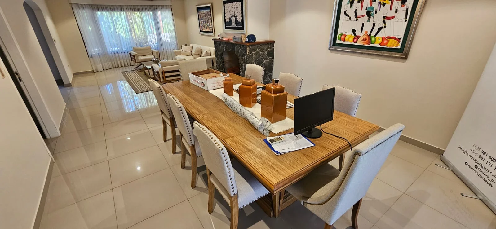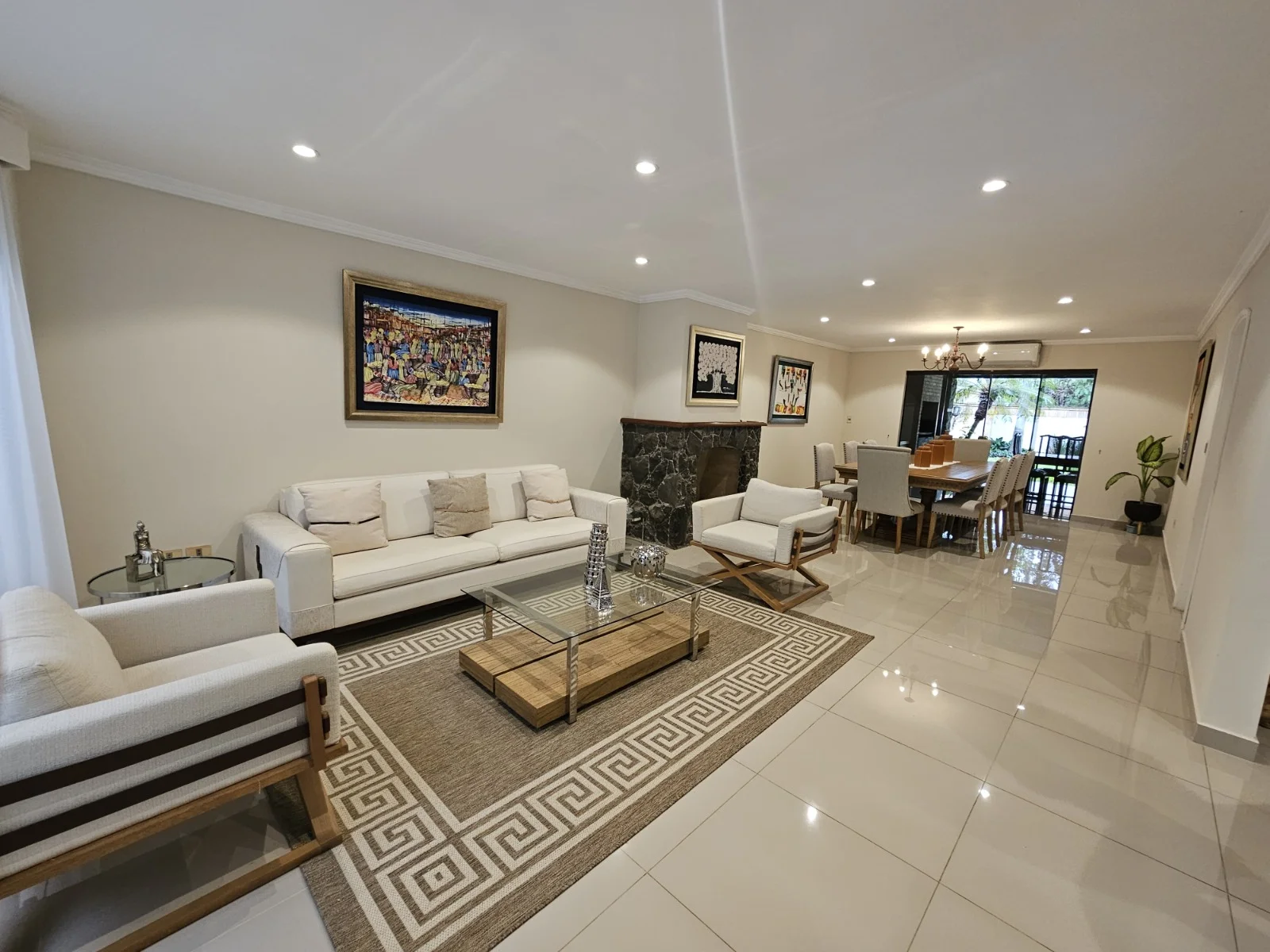 • Living comedor social con chimenea