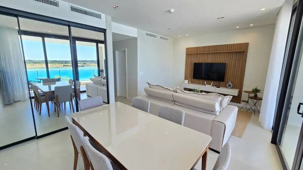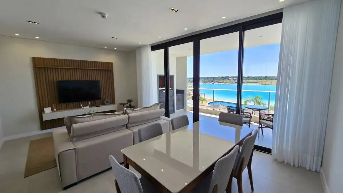 - Living comedor con vista a la crystal lagoon