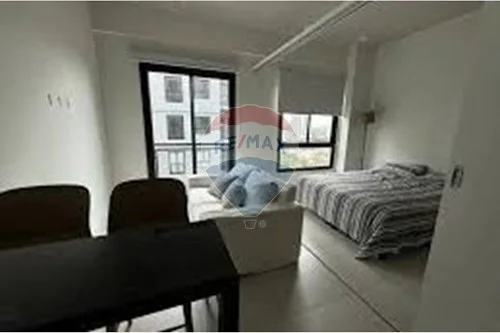 El departamento cuenta con una habitación y un baño, perfectamente diseñado para maximizar el espacio y el confort. Disfruta de áreas comunes excepcionales, que incluyen una piscina comunitaria, un quincho y un gimnasio, perfectos para relajarse y mantenerse activo. Además, cuenta con un portero eléctrico, acceso para sillas de ruedas y aire acondicionado para asegurar la comodidad y seguridad de los residentes.