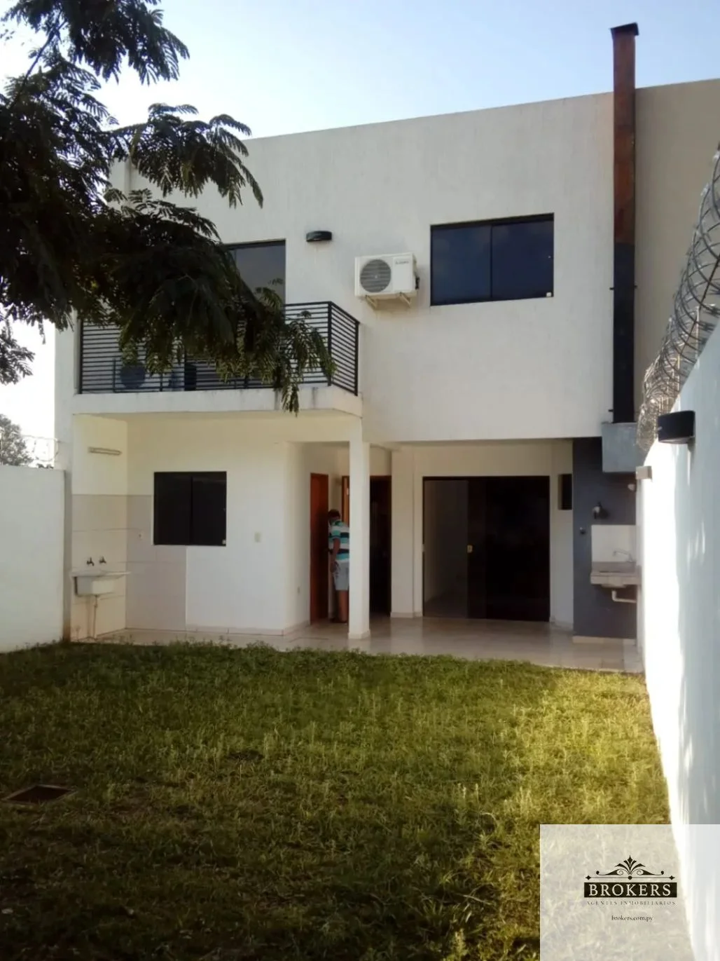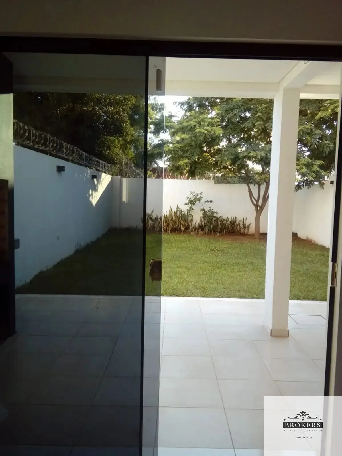 Jardín empastado atrás y al frente.
