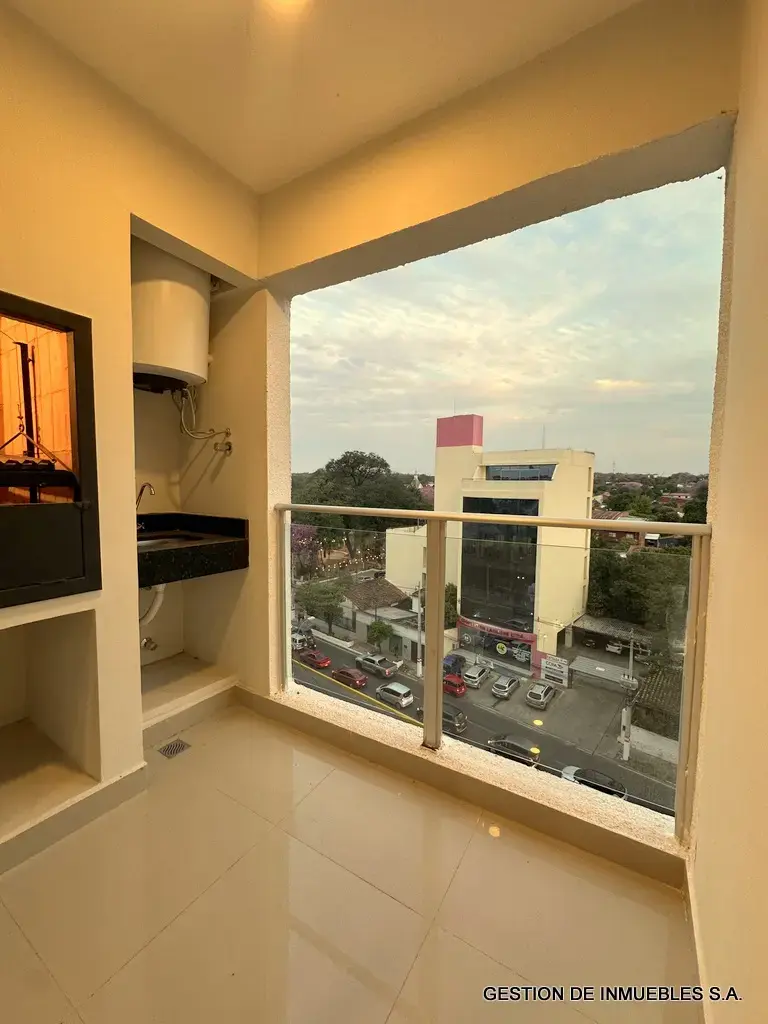 Ubicado sobre Cacique Lambaré, a 1 cuadra de la Municipalidad, frente a la Cooperativa Lambaré, en piso alto con balcón con vista sobre la avenida.