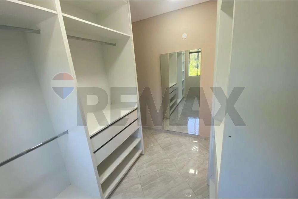 Garaje para 3 vehículos patio delantero y trasero empastado con esmeralda premium, sala concepto abierto , comedor semi independiente con salida a la piscina , cocina totalmente independiente con muebles de la marca industria barrios, basurero oculto en una de las puertas, anafe a gas con su manguerita ya nicho afuera para mayor seguridad de la garrafa, horno empotrable, campana extractor. Patio trasero con piscina 6x3 con cascada, pinturas nueva en toda la casa, lavadero semi bajo techo. Cuchillas , cerco eléctrico, cámaras 6 en total pero DVR para 16 cámaras en total. Ventiladores 2 uno en la sala otro en el comedor , una habitación de huésped o estudio , baño social.