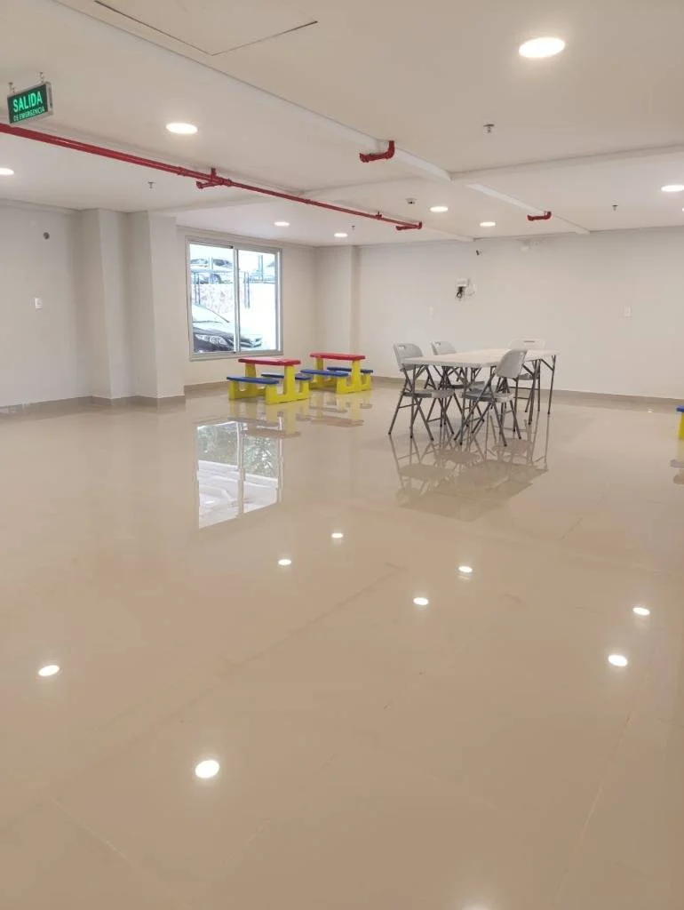Amenities en Planta Baja ( piscina, gimnasio, salón con parrilla climatizado, sala de juegos para niños climatizado, cancha multiuso, quincho con parrilla, areas verdes, y parque para niños)