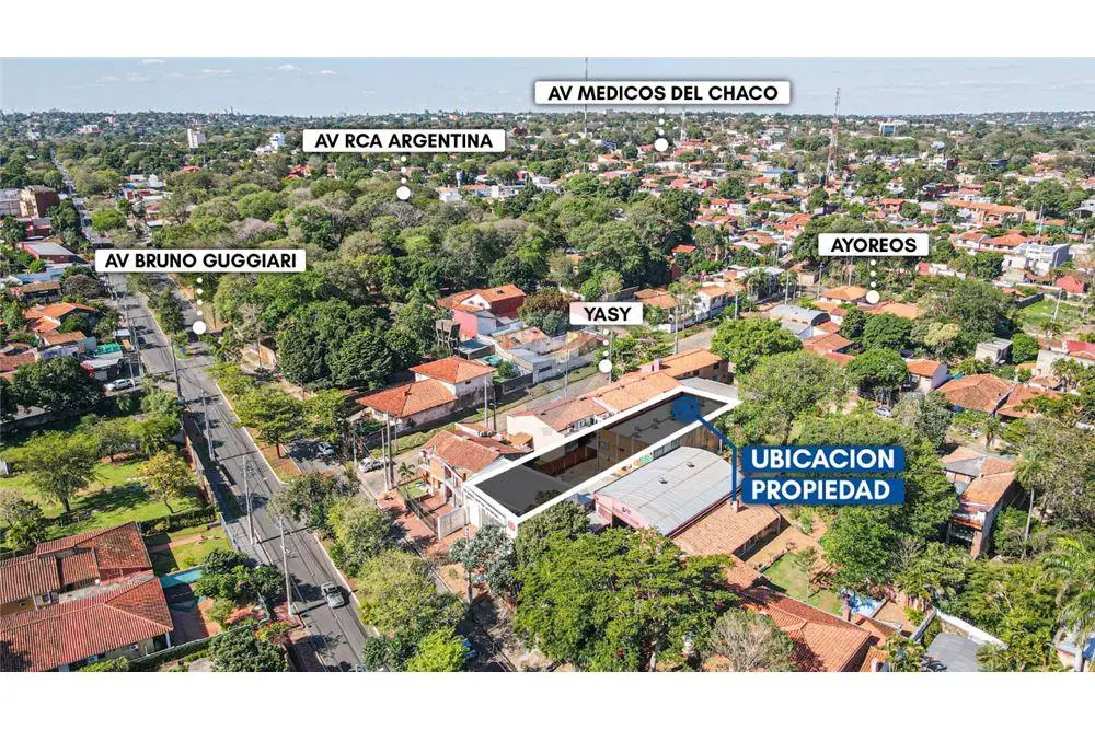 Esta propiedad esta construida en dos bloques en un terreno de 787m2 sobre la Av Bruno Guggiari.