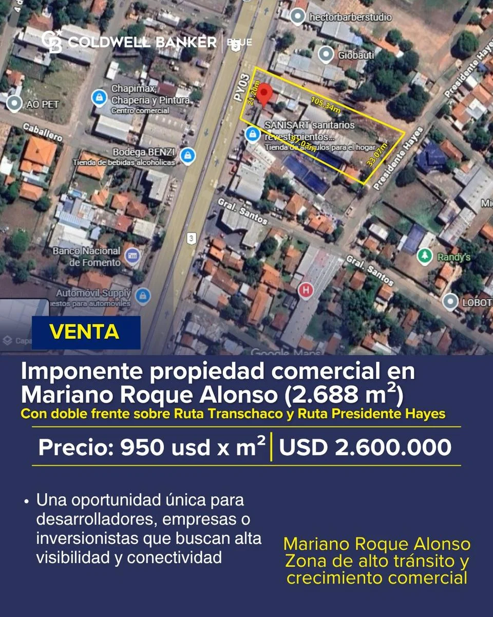 #OportunidadInmobiliaria #PropiedadComercial #MarianoRoqueAlonso #RutaTranschaco #InversiónSegura #TerrenoPremium #BienesRaícesParaguay