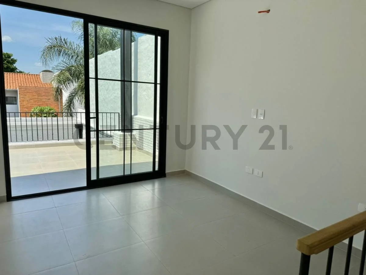 HERMOSA CASA PAREADA BRITISH STYLE A ESTRENAR DISTRIBUCION: Planta Baja Living Espacio amplio de Cocina/Comedor/Quincho Parrilla de Acero Inoxidable Baño Social Piscina Área de servicio lavadero/dormitorio/baño/depósito Garage para 2 autos Planta Alta Dormitorio principal en suite con vestidor 2 dormitorios con baño compartido Estar diario Amplio balcón MEDIDAS: Terreno de 227, 90 m2 Construcción: 241,83 m2
