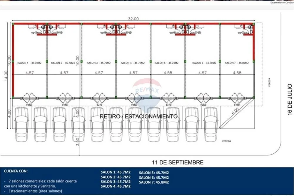 Ofrecemos 7 salones comerciales, ubicados estratégicamente en la calle de 11 de septiembre y 16 de julio, con superficies de 45 metros cuadrados, ideales para diversos tipos de negocios. Estos salones se sitúan en una zona altamente comercial, con fácil acceso y gran visibilidad.