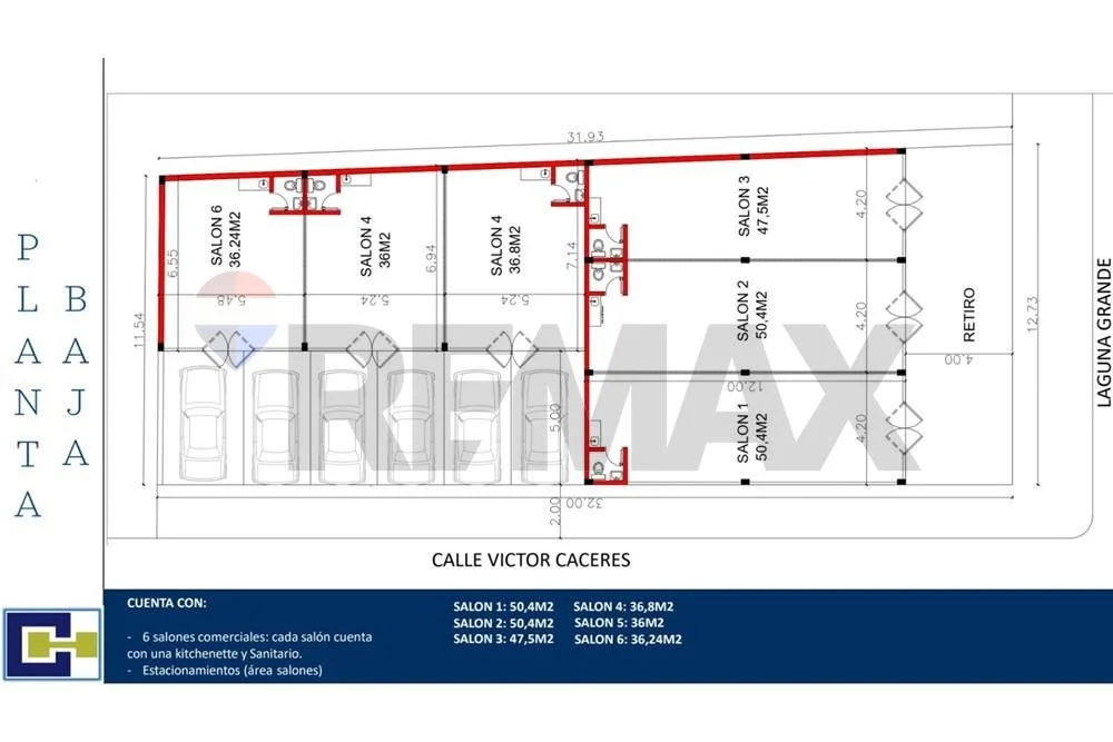 Con una superficie de 47.5 m2. Destacado por su diseño moderno y su ubicación en una calle comercial de alto tráfico,. Ofrece baño independiente, y espacios de estacionamiento, lo cual proporciona comodidad tanto para los empleados como para los clientes.