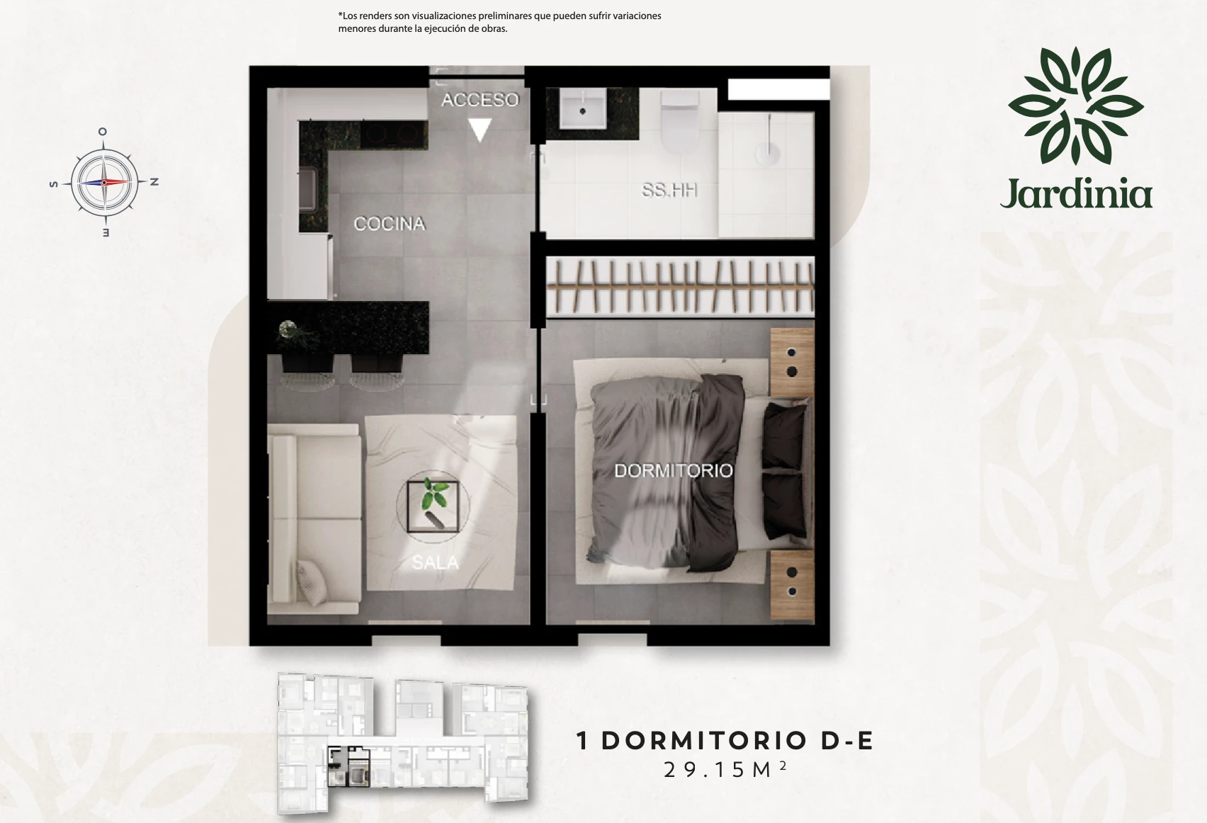 Dpto de 1 habitación a la venta en el Edificio Jardinia, en la ciudad de Luque. A pocos minutos de puntos clave de la ciudad de Asunción, cuenta con accesos directos a las principales avenidas de circulación. Entrega en Noviembre 2025. Detalles del departamento. - Piso 5 - 29,15m2 - 1 dormitorio - 1 baño - Cocina amoblada con anafe, muebles bajo y sobre mesada - 1 cochera Amenities: - Quincho climatizado - Piscina Panorámico - Solarium - Sauna - Lavandería - Tendedero - Gimnasio Equipado - Espacio exterior con parrilla - Espacio de Mascotas - Area de juegos para niños - Guardia 24 Hs - Circuito cerrado