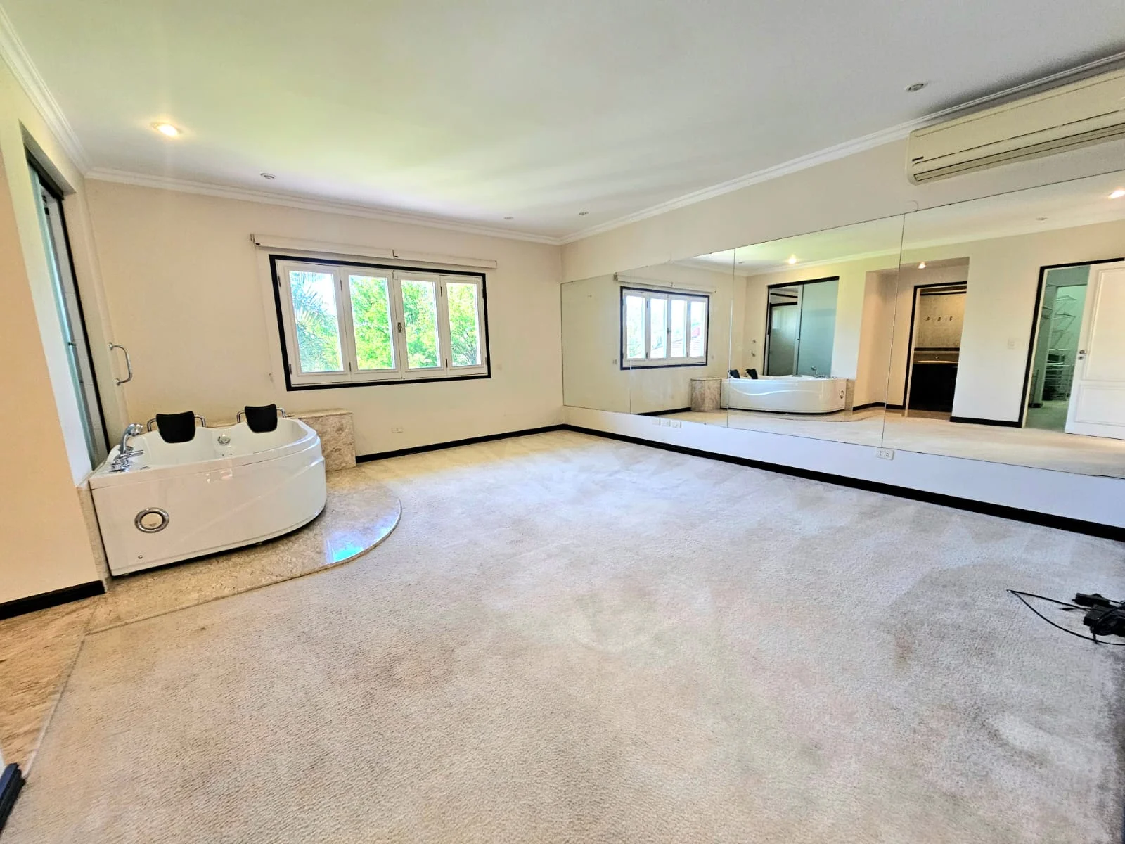 * 1 gimnasio alfombrado en suite con hidromasaje y sauna con baño completo y espejo de pared a pared
