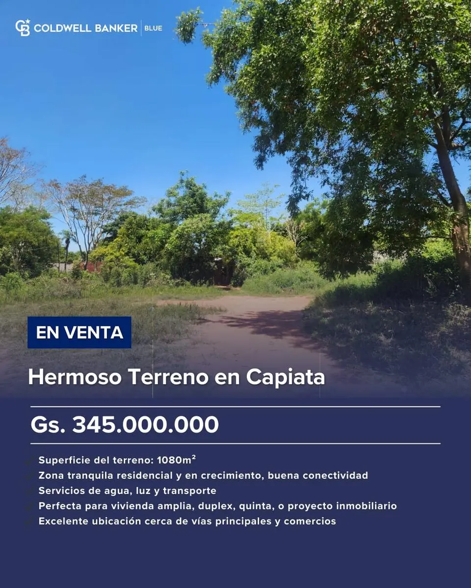 EN VENTA: Terrenos en Costa Salinas, Capiatahttps://maps.app.goo.gl/McaiB4tt3rbRaiPd83 lotes contiguos con superficie total de 1.080 m²Ubicados en un barrio tranquilo y en crecimiento.Topografía regular, buen acceso, entorno residencial y servicios básicos disponibles.Ideal para quienes buscan invertir, en proyectos habitacionales, recreativos o proyecto inmobiliarioUna Opción con Gran Potencial, excelente ubicacion y cerca de vias principales y comercios© 2024 Coldwell Banker. Todos los derechos reservados. Coldwell Banker y los logotipos de Coldwell Banker son marcas de servicio de propiedad de Coldwell Banker Real Estate LLC. El sistema Coldwell Banker® está compuesto por oficinas propias de propiedad de una subsidiaria de Anywhere Advisors LLC y por oficinas adheridas al Sistema Coldwell Banker que son de propiedad y operación independientes.