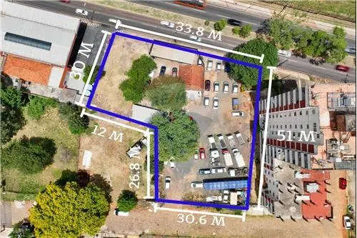 33.7 m de frente sobra la avenida y 30,6 m sobre la calle paralela. Un total de 1844 m2. Frente mismo al campus de la UNA.