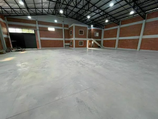 La altura promedio del techo es de 9,00 m., piso de Hormigón Armado de 15cm de espesor para soportar el peso de camiones cargados.