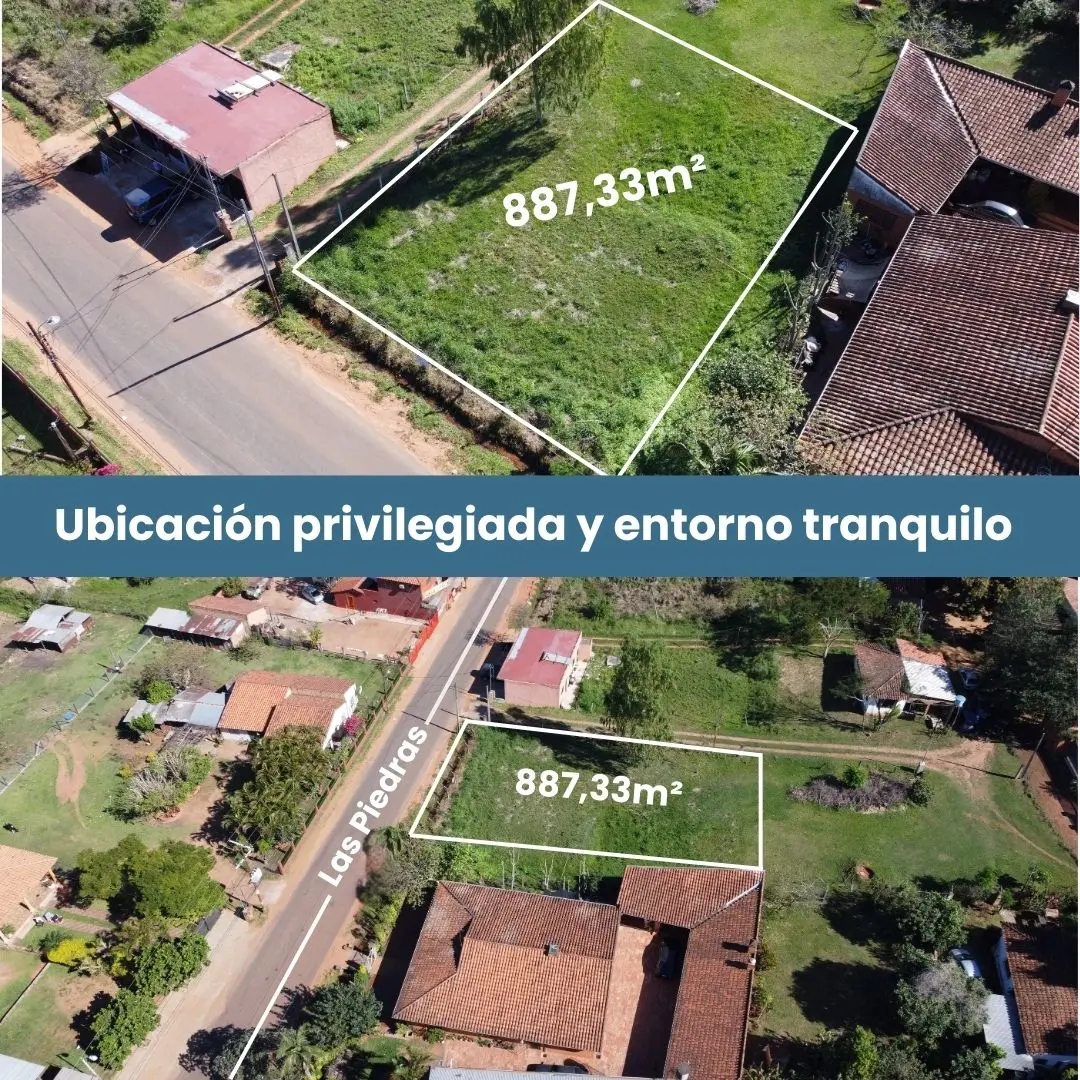 Un terreno de 8.545,77 m² con ubicación privilegiada sobre Avda. Las Piedras (asfaltada), a pasos de la Ruta D027 (ex Ruta 1).