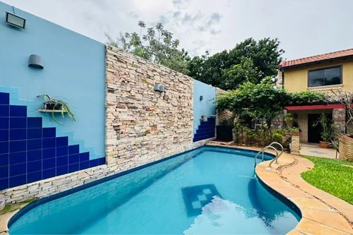 Piscina con cascada.