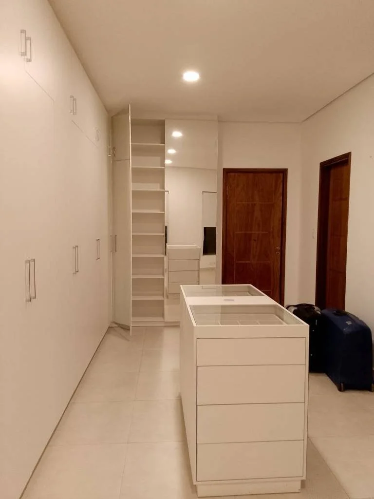 * Hall de entrada y escritorio con muebles hechos a medida