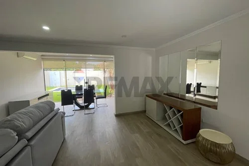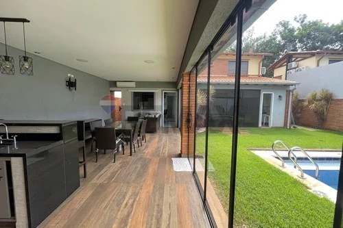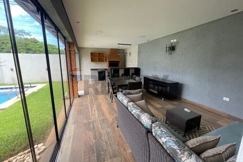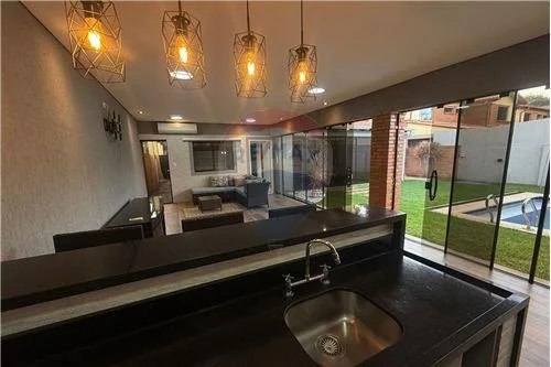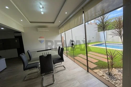 - sala, comedor, quincho cerrado con Blindex templado, todo integrado, parrilla revestida en acero inoxidable con espadines giratorios de inox, piso porcelanato en toda la Planta, cocina amoblada con mesada, amplio lavadero con habitación de servicio, zona de tendedero, deposito, baño social, baño de servicio.