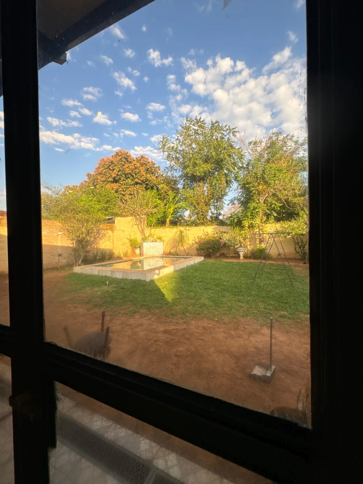 Amplio patio trasero con piscina