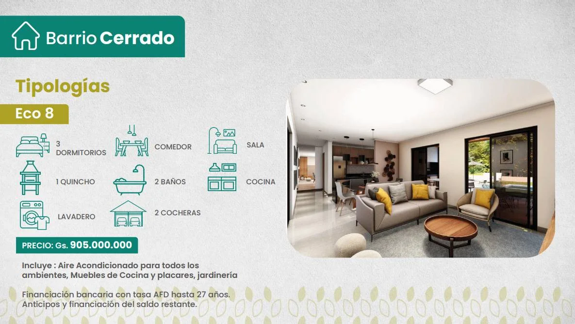 Descubrí un barrio privado diseñado para un estilo de vida sereno y seguro, donde el diseño urbano se integra con amplios espacios verdes para disfrutar al aire libre. Ubicación estratégica, a minutos de Asunción y del centro de Luque, en una zona urbanizada, con excelente conectividad y todos los servicios esenciales a tu alcance.