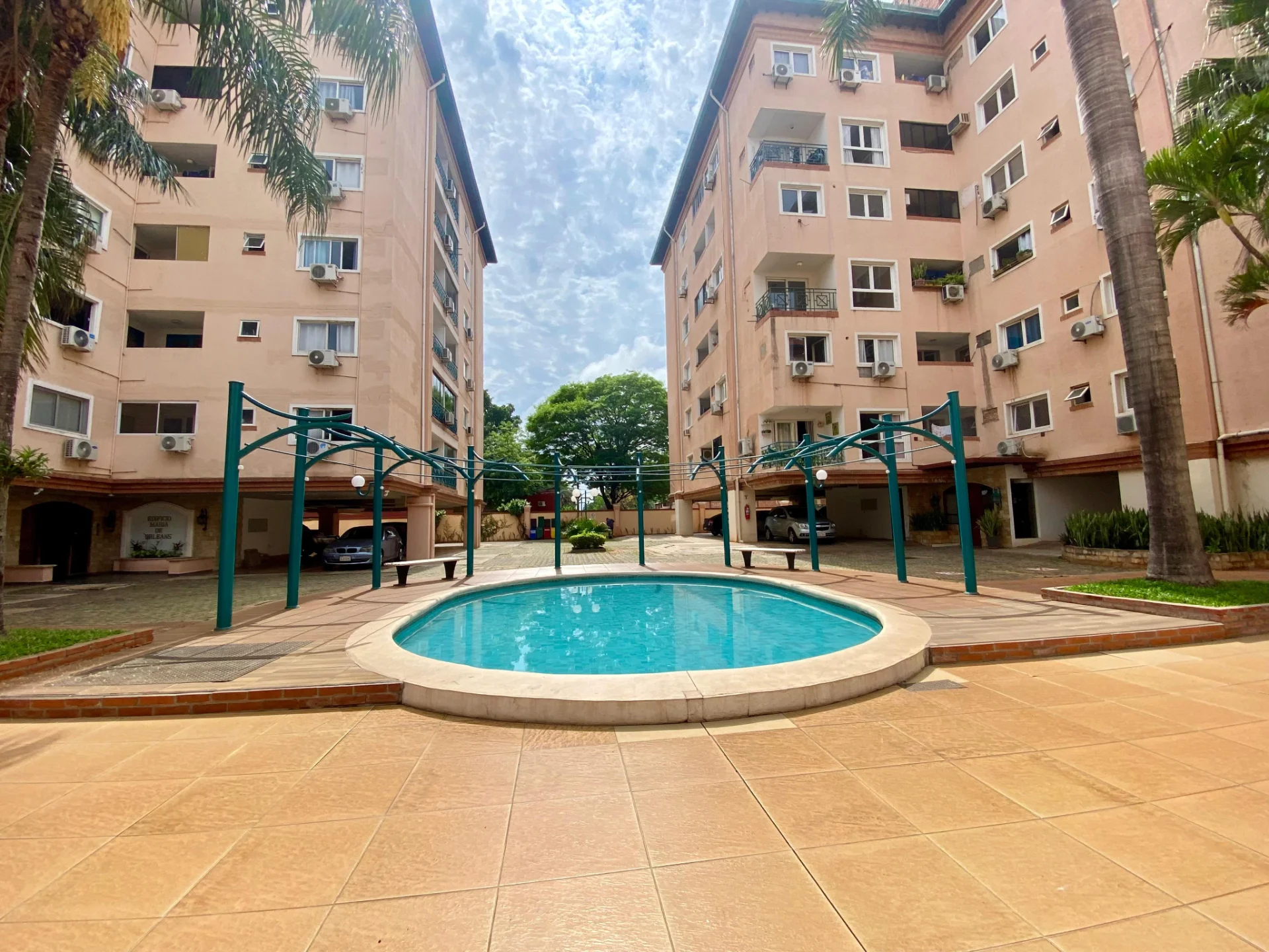 Piscina, cancha y parque infantil