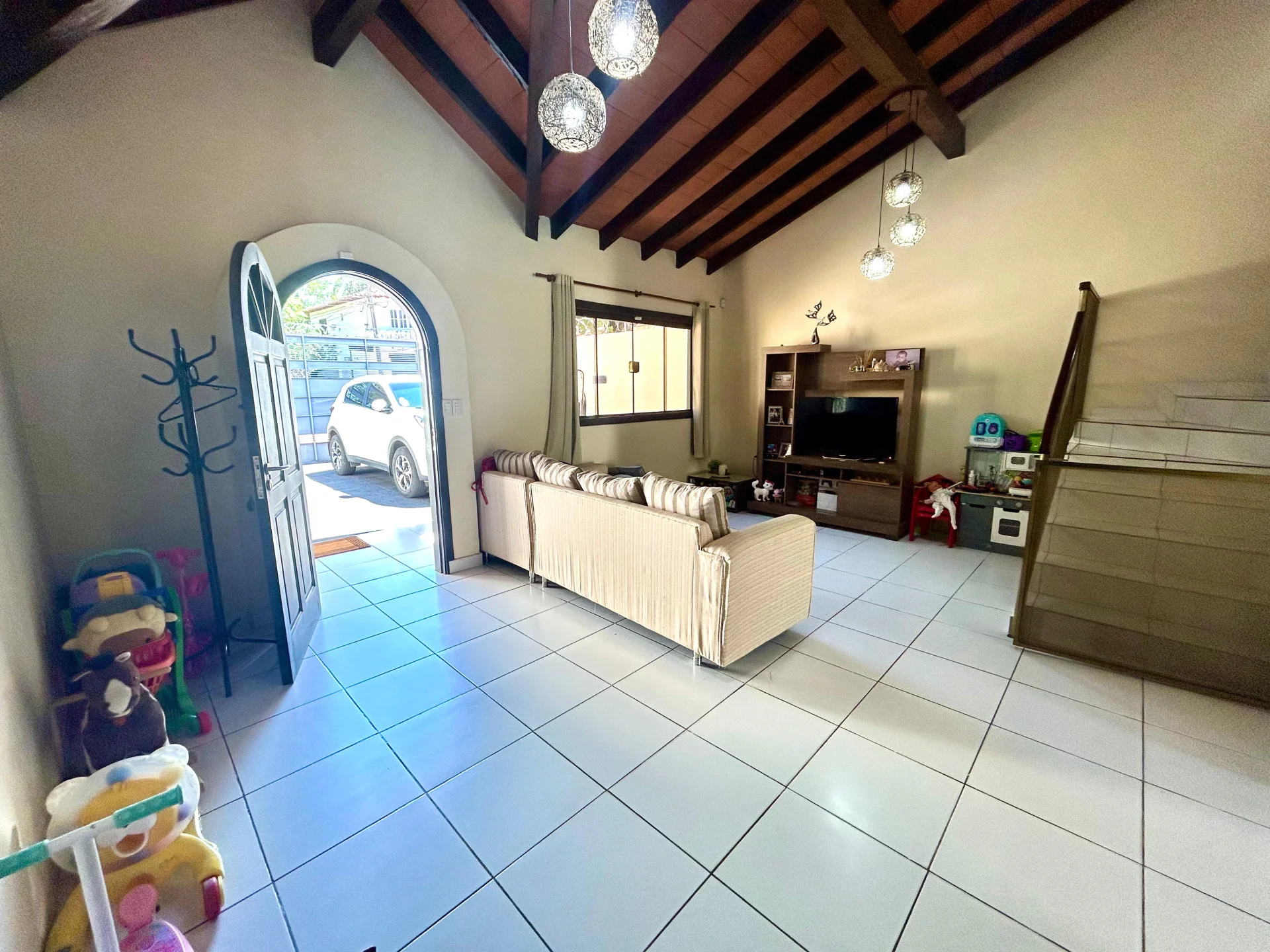 DUPLEX AMOBLADO Y EQUIPADO EN LAMBARÉ 3 dormitorios Superficie del Terreno: 188 m2 Superficie Construida: 146 m2 A media cuadra de la calle Heroes del 70 (asfaltada) y en la zona del Campus Deportivo de la UAA. Planta baja: cochera para 2 vehiculos, porton de acceso vehicular basculante, amplia sala, baño social, cocina y comedor integrado. Galeria con parrilla, lavadero y amplio patio con arboles y flores. Ventanas y puertas de blindex con cortinas y todos los ambientes con A.A. split Planta Alta: 3 dormitorios (1 en suite, con split y vestidor. Baño equipado con termo calefon nuevo). Todos los dormitorios equipados con placares, cortinas anti solar y A.A. split. 1 baño familiar completo. Incluye: Muebles, Aire acondicionado en todos los ambientes, electrodomésticos, maquina para cortar pasto, parque infantil Valor de venta: Gs. 720.000.000 Apto para crédito bancario