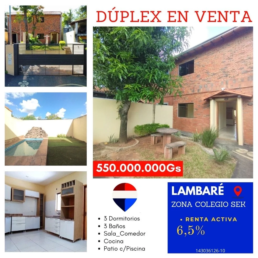 ???? *Hermoso Dúplex c/ Piscina en Venta / Renta Activa - Ciudad de Lambaré - Zona SEK*✨