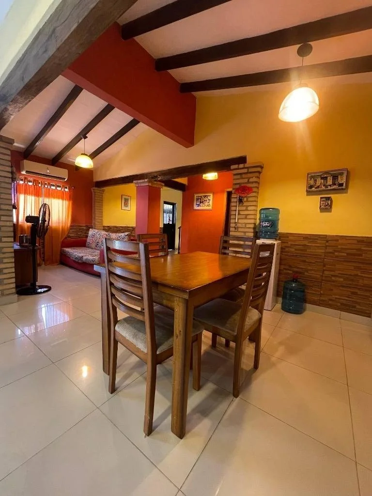 VENDO AMPLIA CASA EN LAMBARÉ Ubicado en el barrio mbachio I de la ciudad de Lambaré, sobre la Avd. Carretera de López. Dimensiones: 360 m2 de terreno, 290 m2 construidos. Descripción: Planta baja - Amplio living / comedor - Baño social - Escritorio - Cocina amoblada - Comedor diario - Estar - 1 dormitorio - 1 baño familiar - Área de servicio completa (dormitorio y lavadero) - Patio con piscina - Baño social - Quincho - Cochera para dos vehículos Planta alta: - 2 dormitorios en suite (uno de ellos con vestidor y balcón) Inversión: 1.277.500.000 Gs.- Apto para crédito bancario