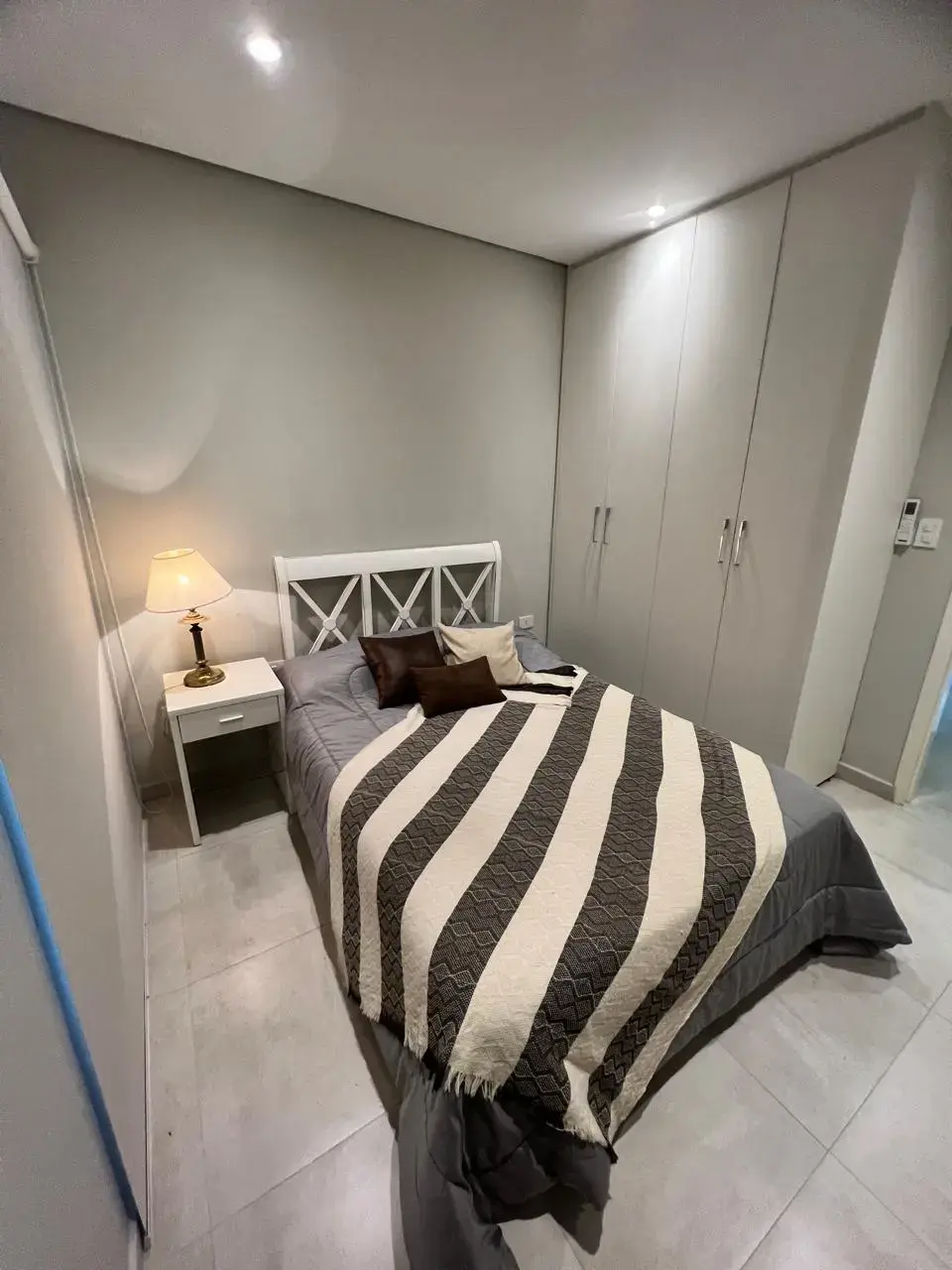 Placard de 3 puertas y vestidor de 4 puertas en la suite y baño con mesada d granito y bacha.