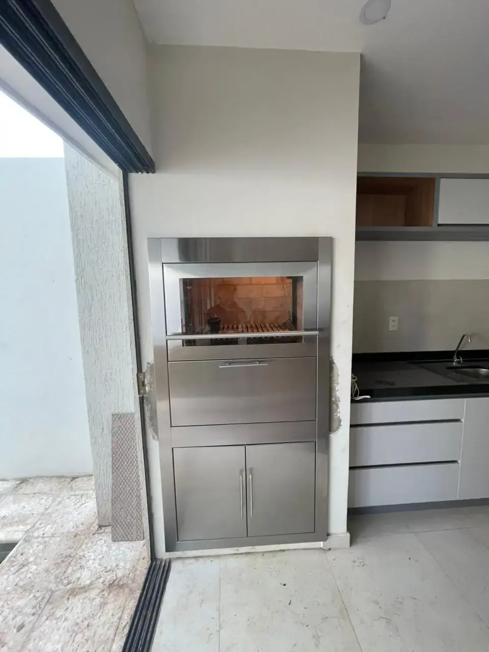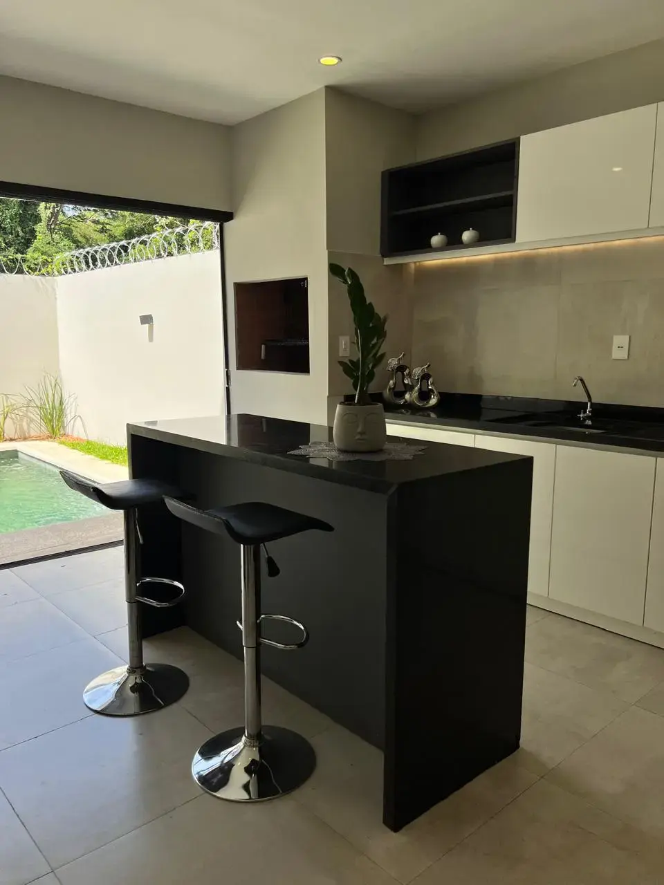 * Galería con parrilla c/ extractor y barra mesada de Granito en 2 niveles.