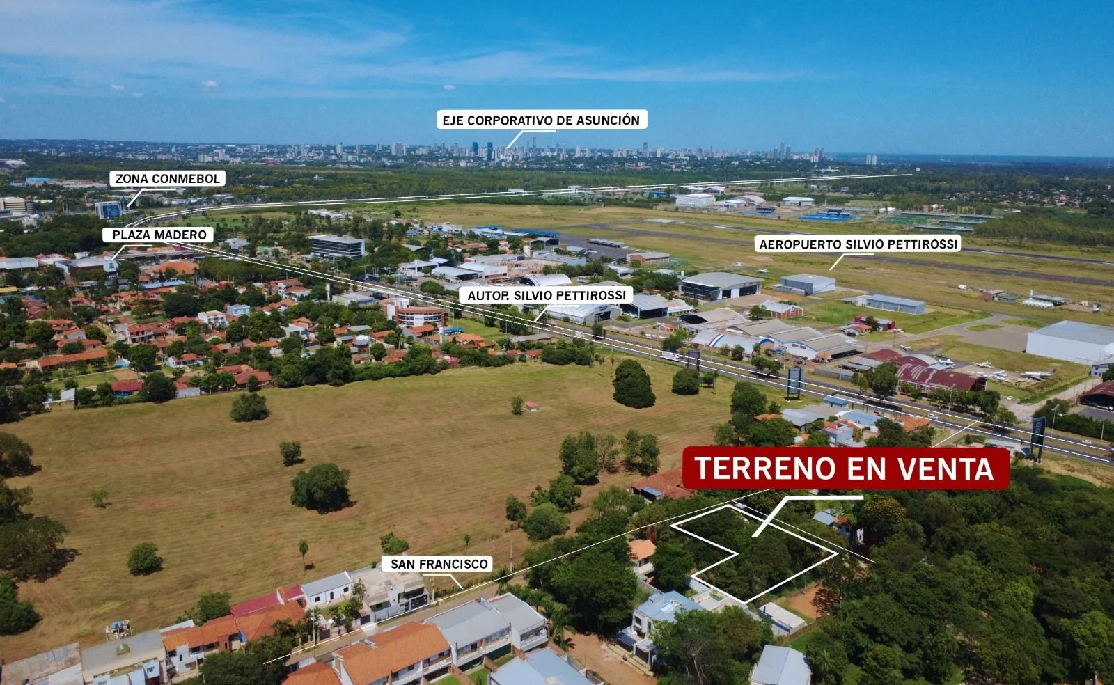 A 1 MIN DEL AEROPUERTO SILVIO PETIROSSI A 5 MIN DE LA CONMEBOL A 10 DEL EJE CORPORATIVO Y SHOPPING DEL SOL Zona de auge en construcción de Dúplex. https://maps.app.goo.gl/M5Ry7eShD9mDV3Yg9?g_st=iwb 1.272 M2 USD. 330.000